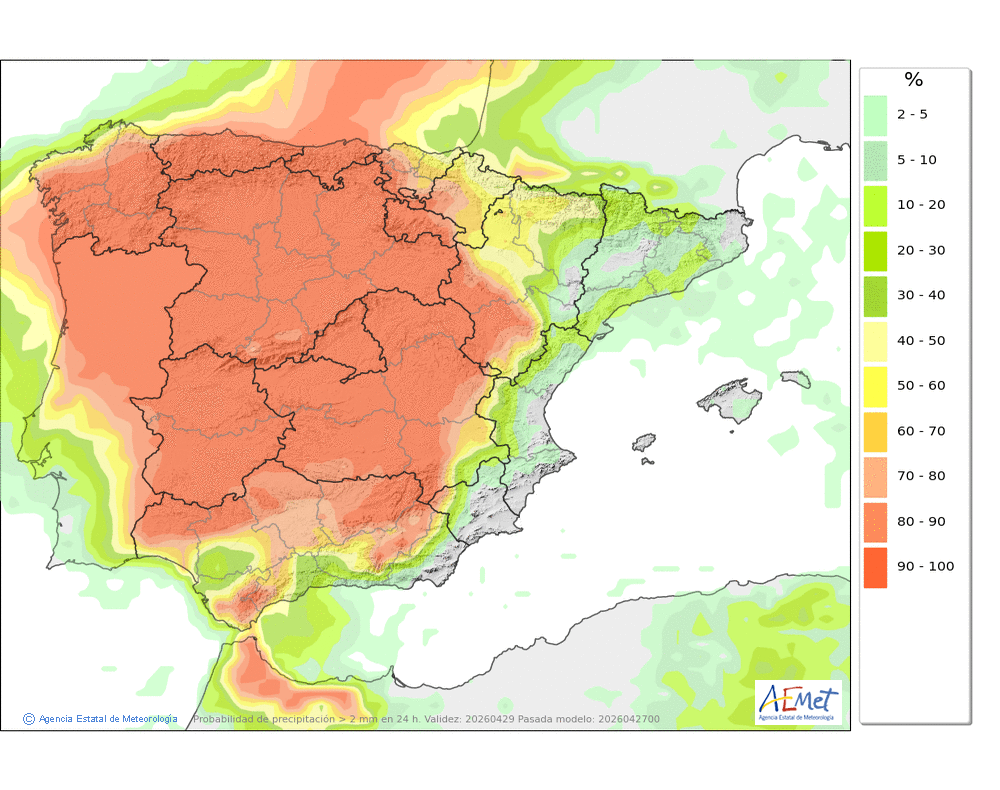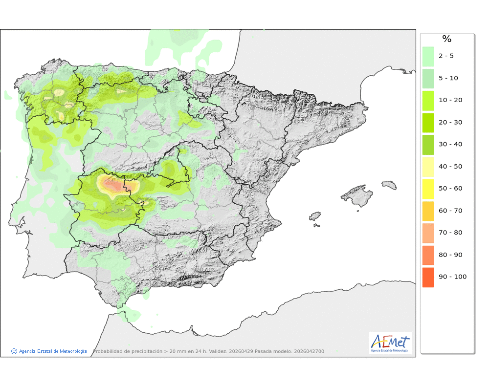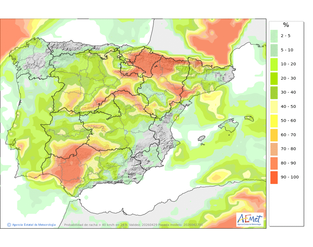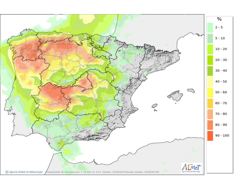 Se esperan chubascos ocasionales, sobre todo durante la segunda mitad del día, que podrían ser localmente fuertes e ir acompañados de granizo.