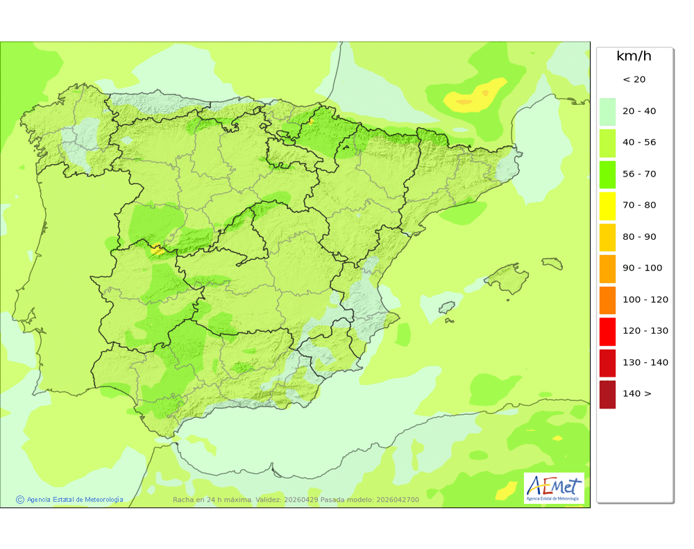Soplarán vientos flojos o moderados de componentes este y sur, pudiendo ser fuertes, racheados y de dirección variable durante los chubascos o tormentas.