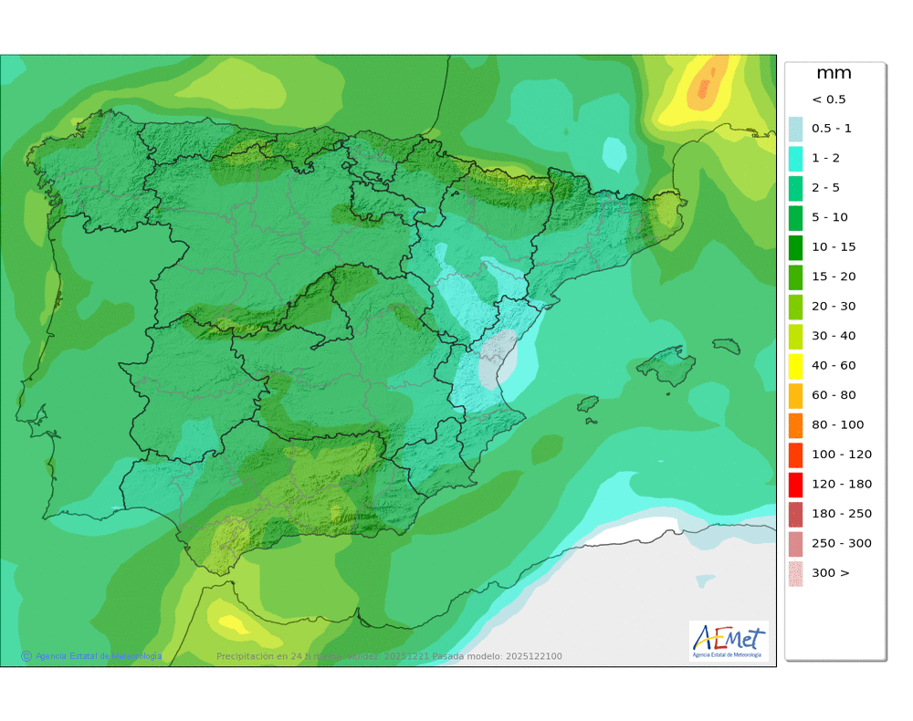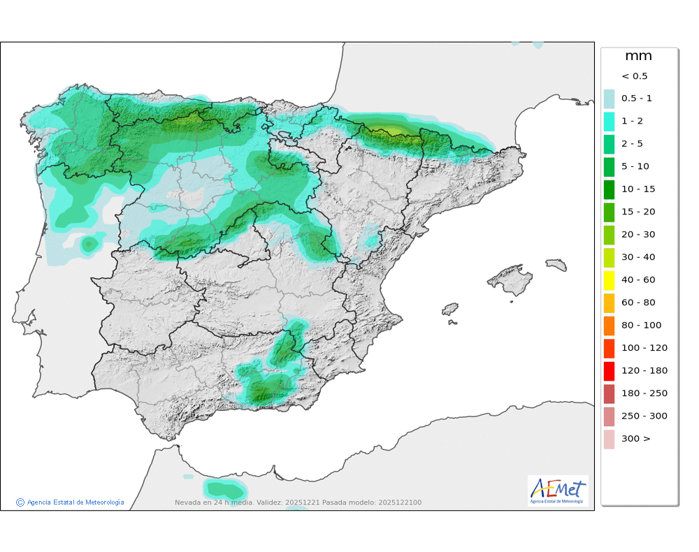 Elaboración de la predicción por la AEMET y el servicio de alerta meteorológica en Europa. (última actualización: 2025-12-21T07:40:10)