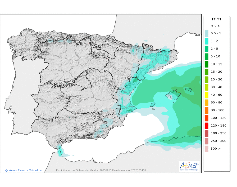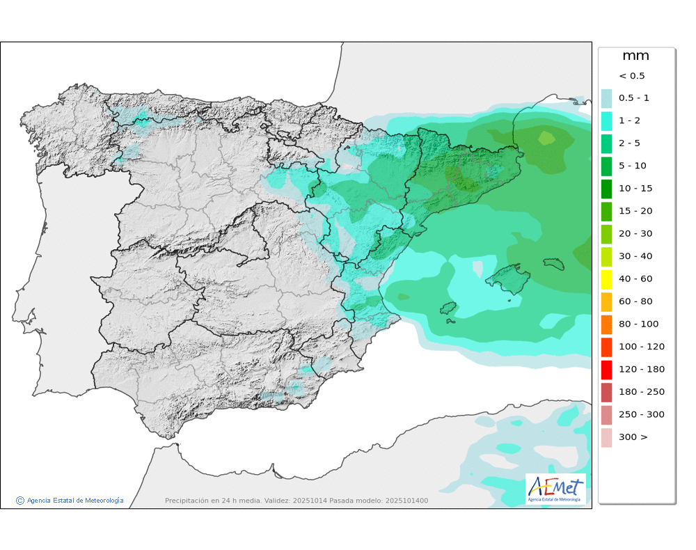 Elaboración de la predicción por la AEMET y el servicio de alerta meteorológica en Europa. (última actualización: 2025-10-14T08:47:12)