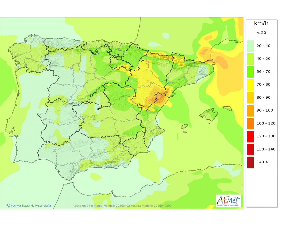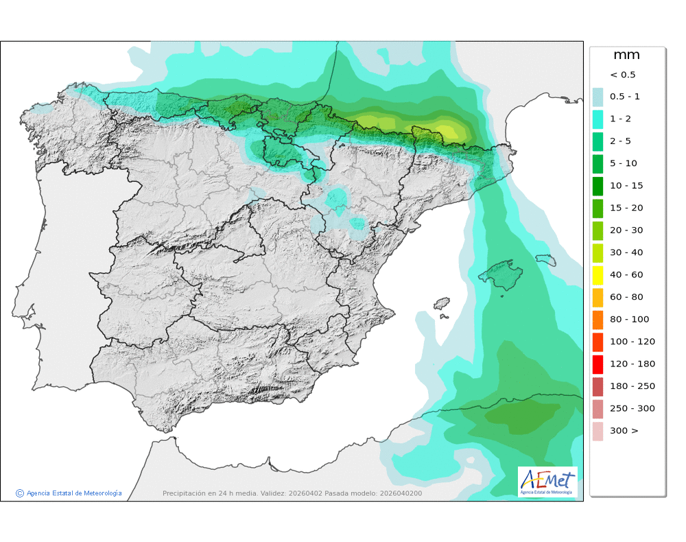 Elaboración de la predicción por la AEMET y el servicio de alerta meteorológica en Europa. (última actualización: 2026-04-02T06:47:12)