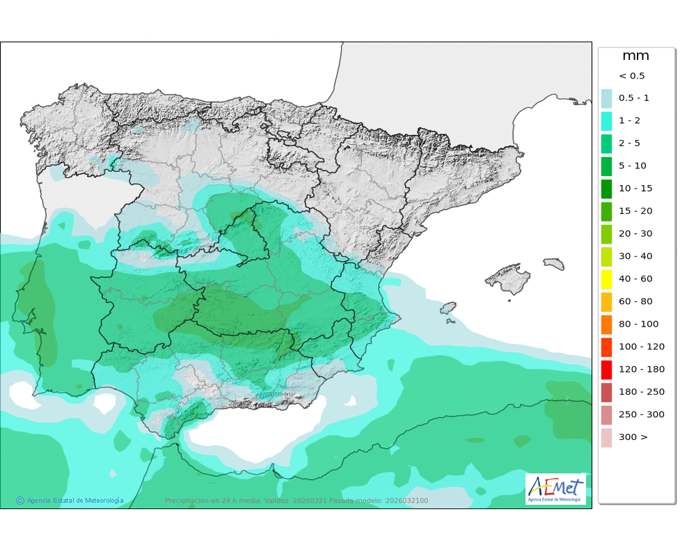 Elaboración de la predicción por la AEMET y el servicio de alerta meteorológica en Europa. (última actualización: 2026-03-21T06:47:11)