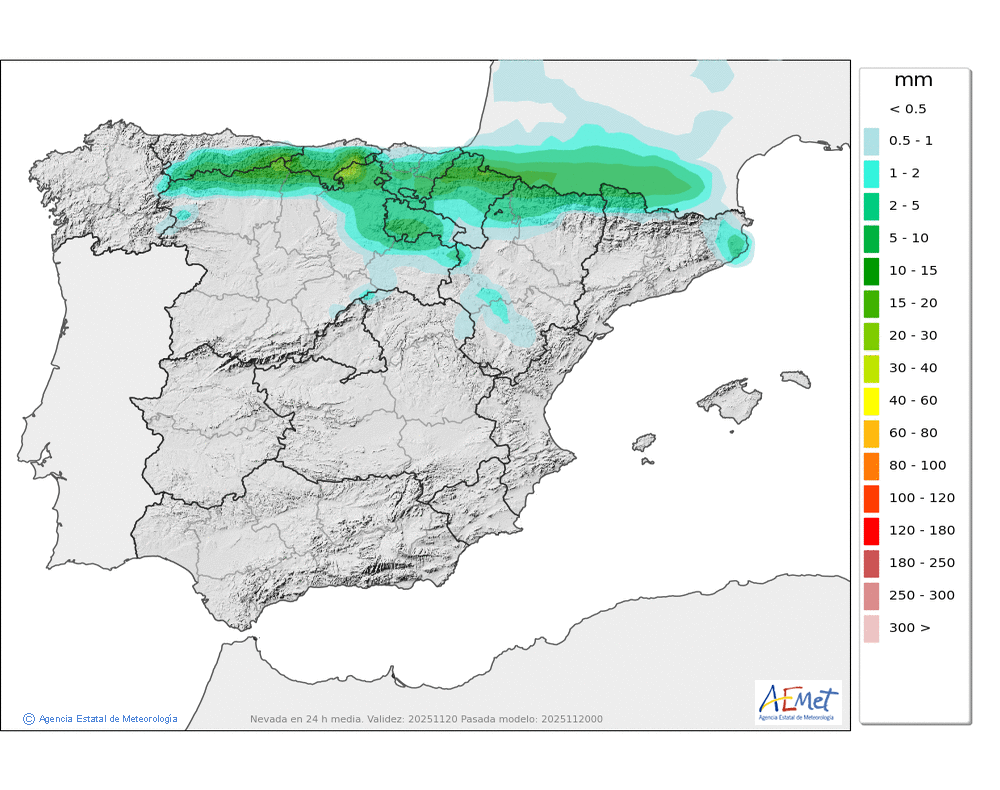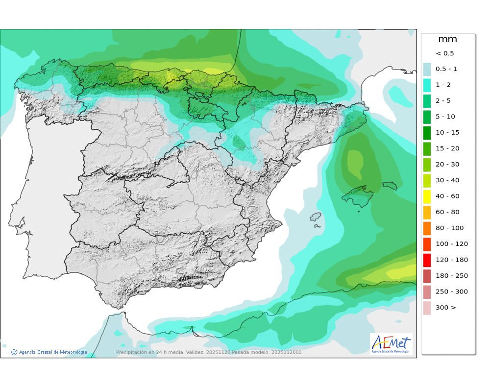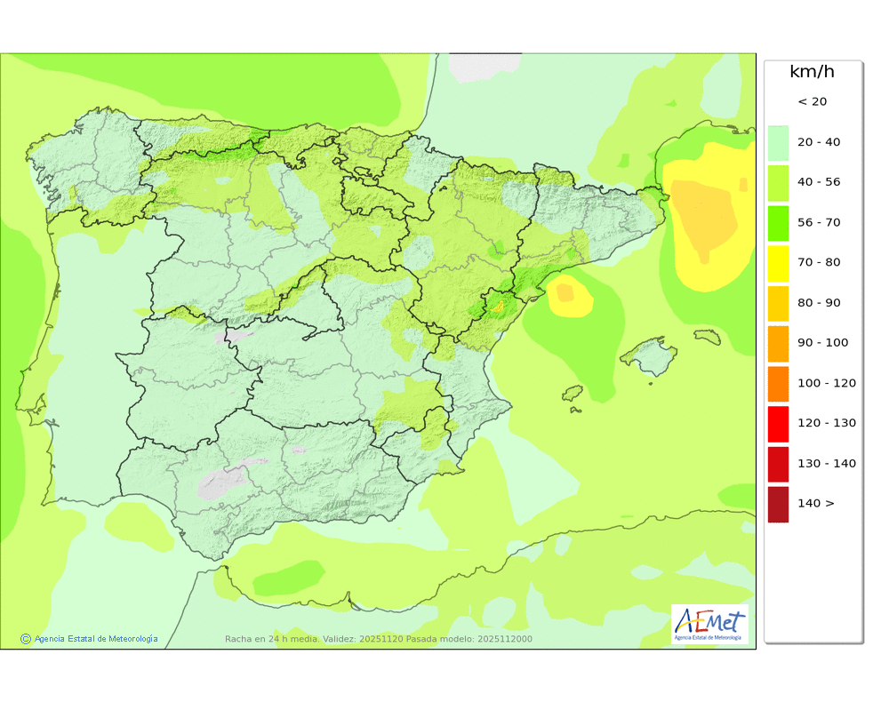 Elaboración de la predicción por la AEMET y el servicio de alerta meteorológica en Europa. (última actualización: 2025-11-20T08:57:12)
