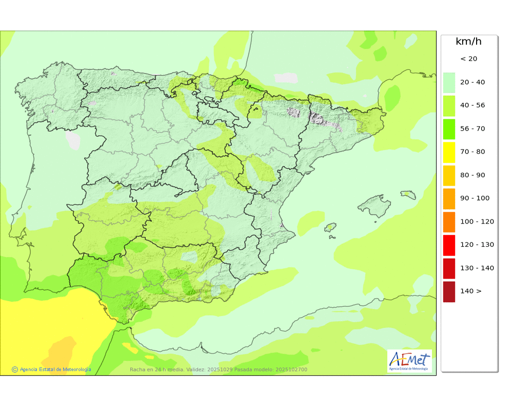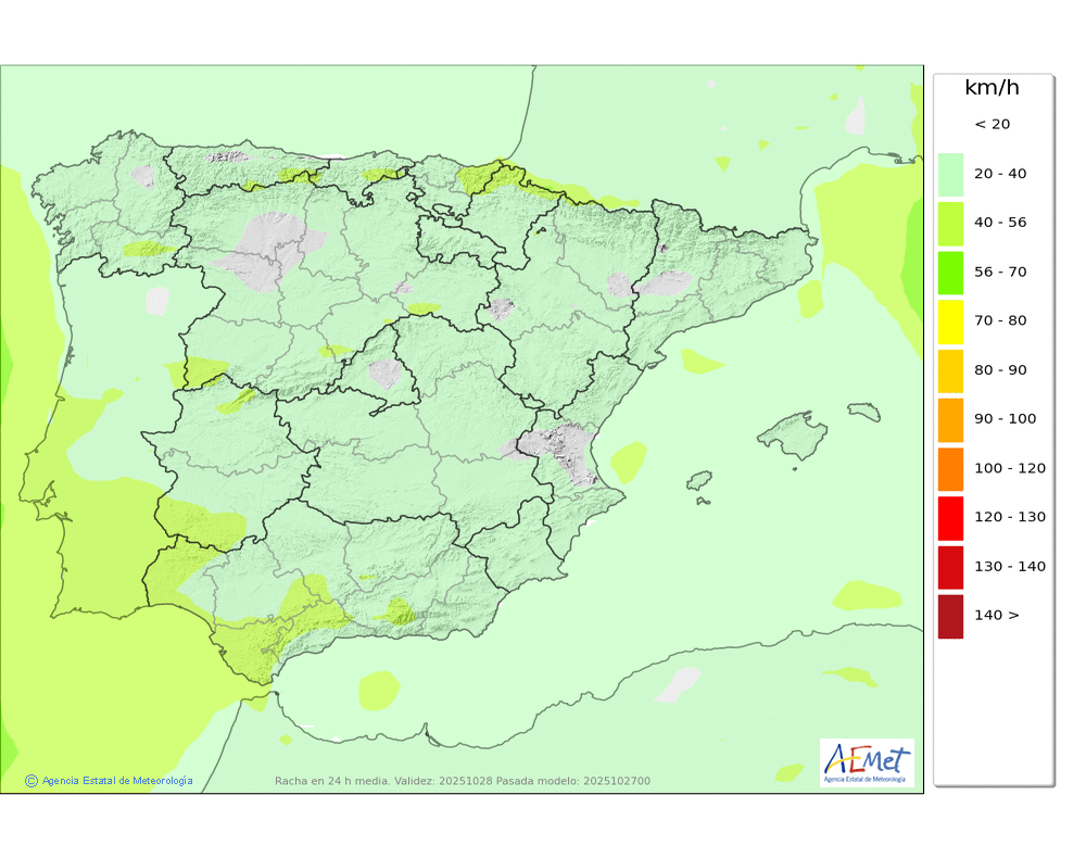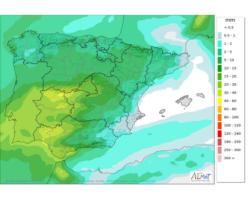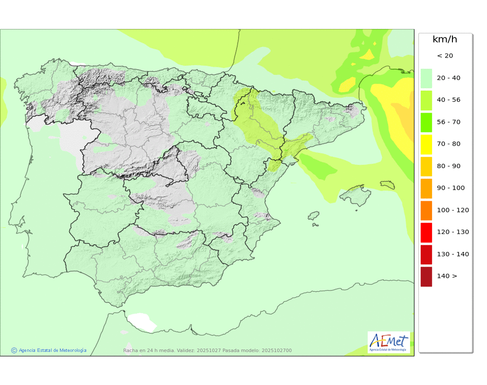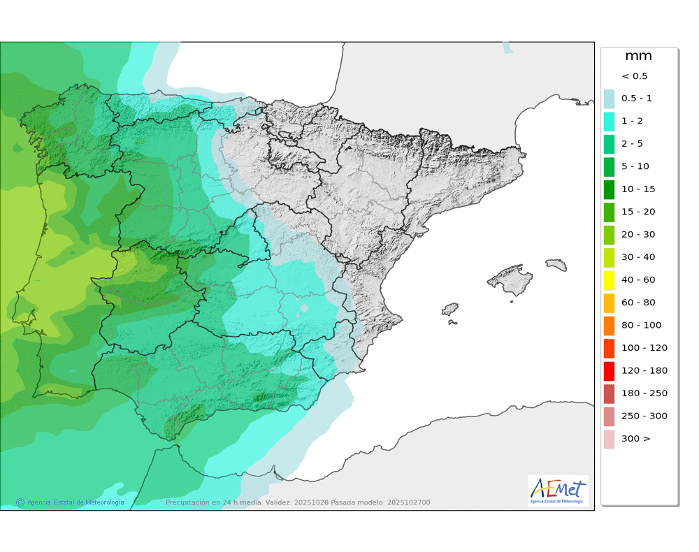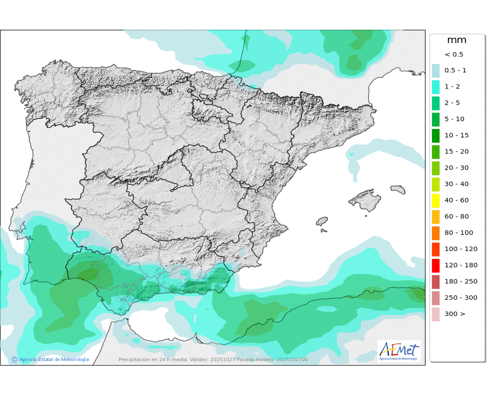 Elaboración de la predicción por la AEMET y el servicio de alerta meteorológica en Europa. (última actualización: 2025-10-27T09:02:12)