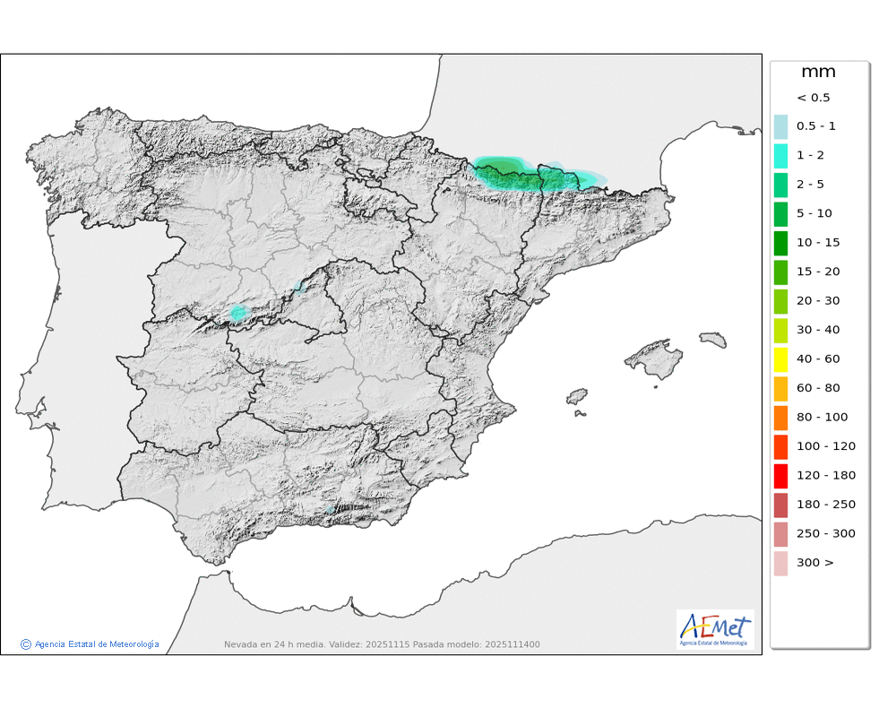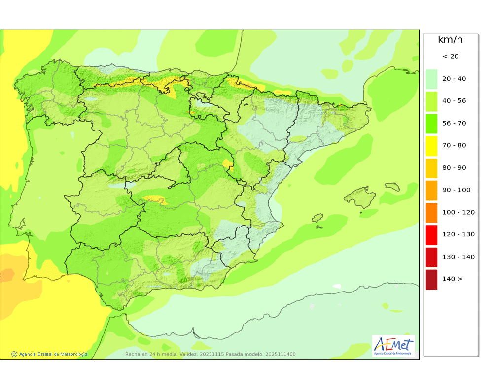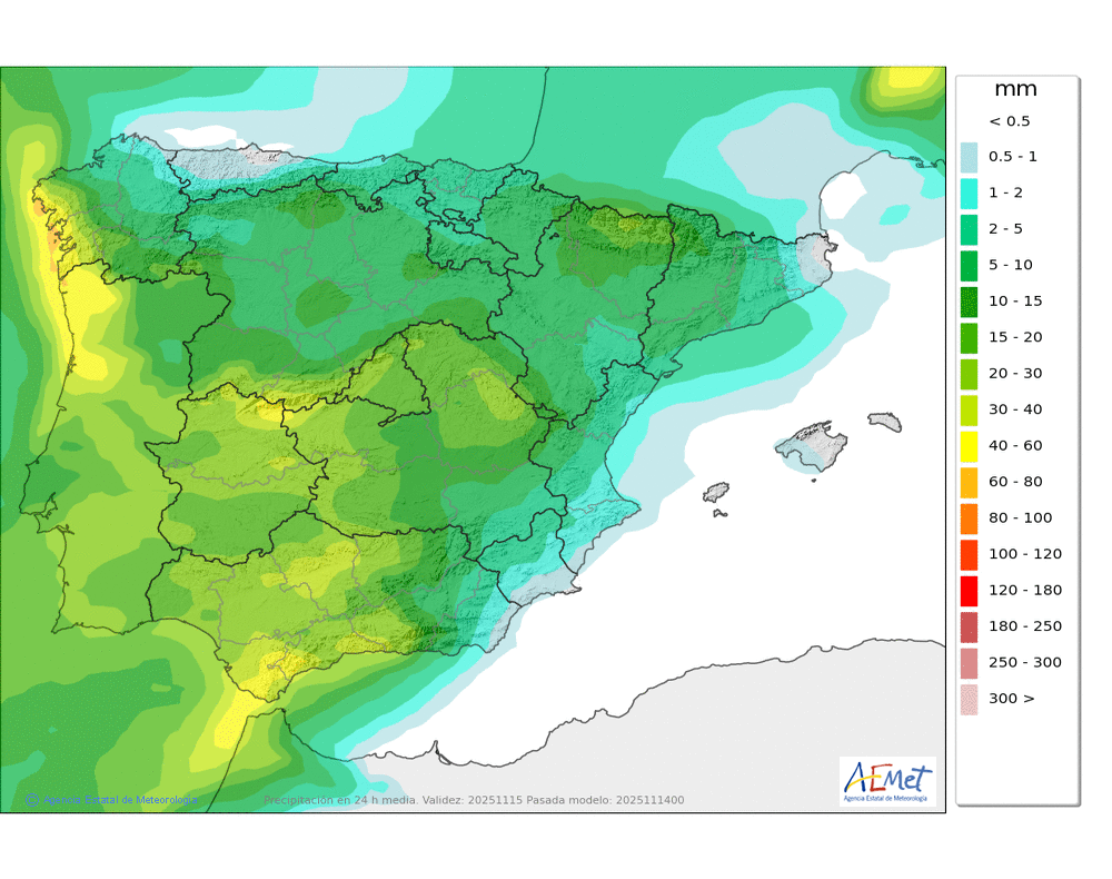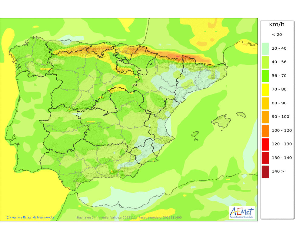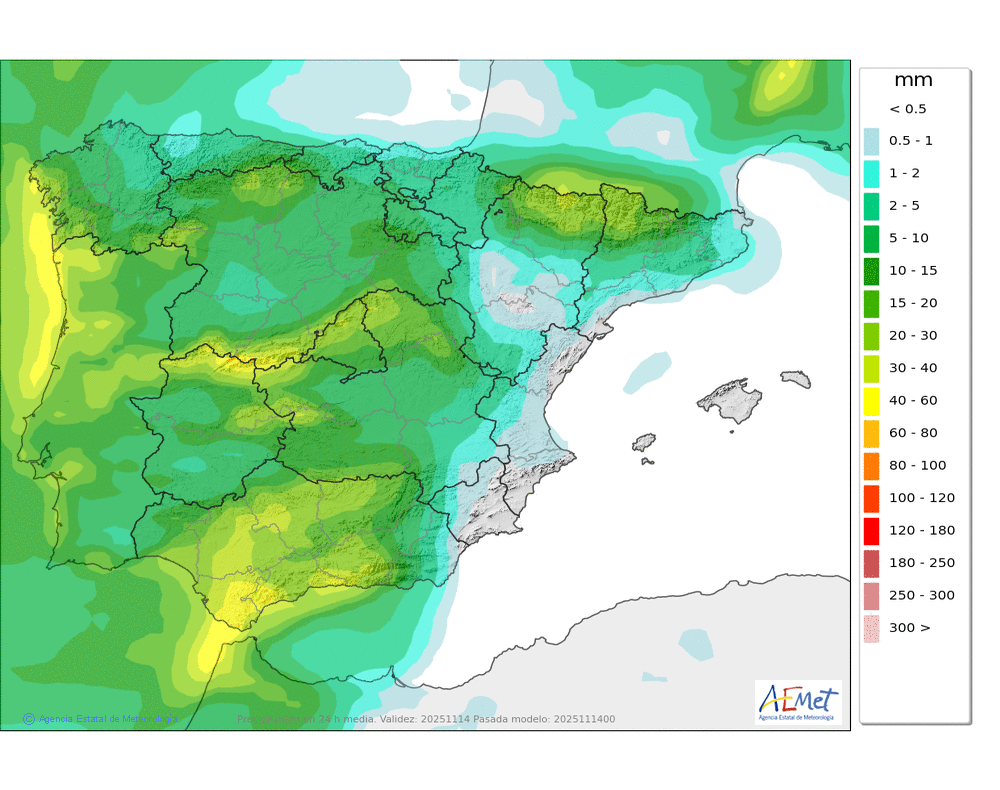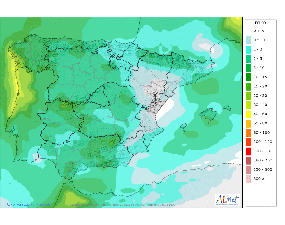 Elaboración de la predicción por la AEMET y el servicio de alerta meteorológica en Europa. (última actualización: 2025-11-14T06:37:11)