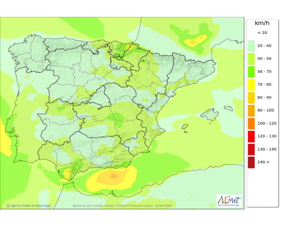 | Racha máxima del viento | |||