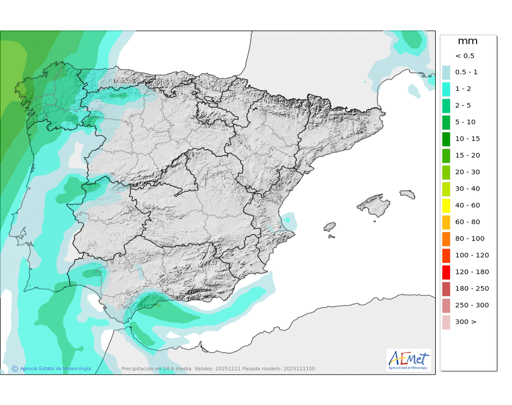 Elaboración de la predicción por la AEMET y el servicio de alerta meteorológica en Europa. (última actualización: 2025-12-11T21:02:14)