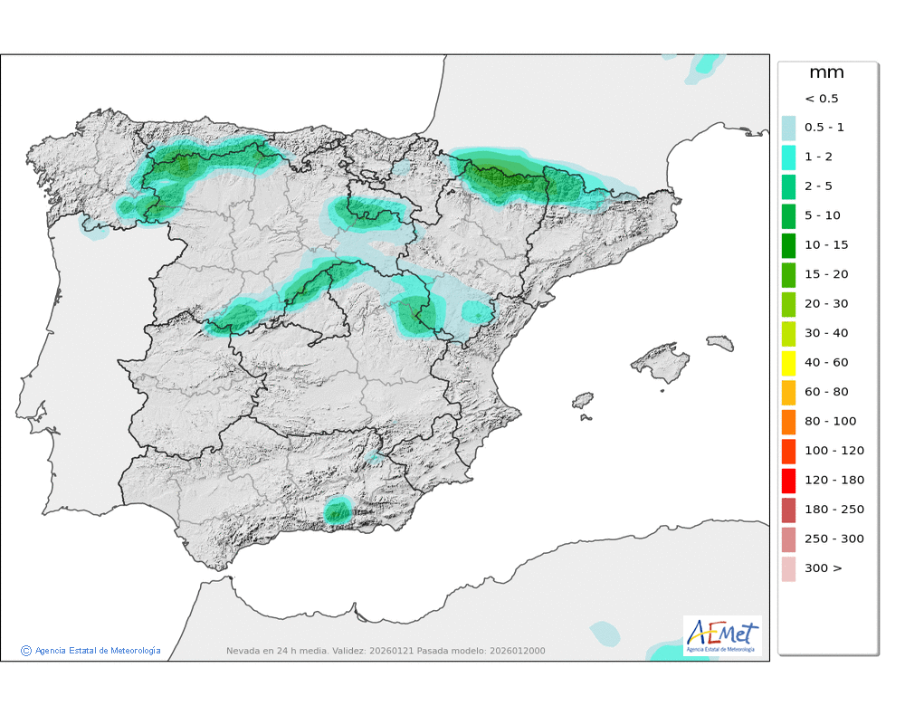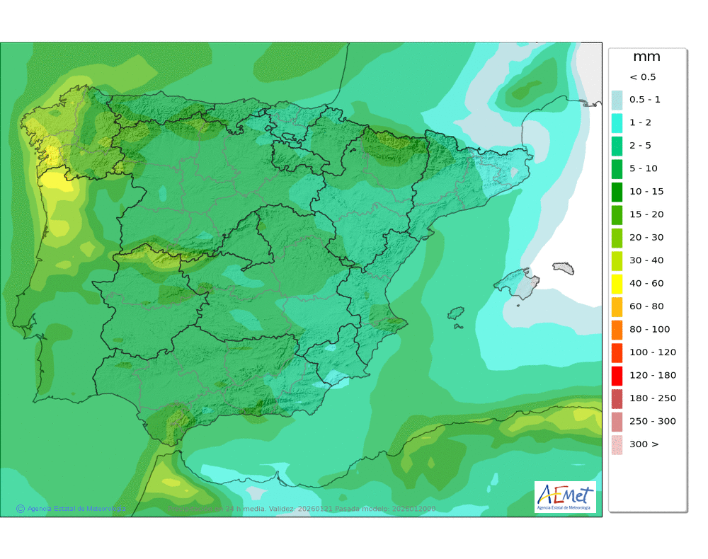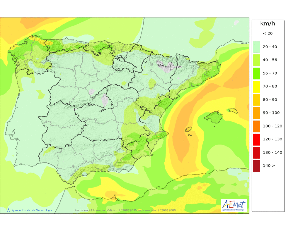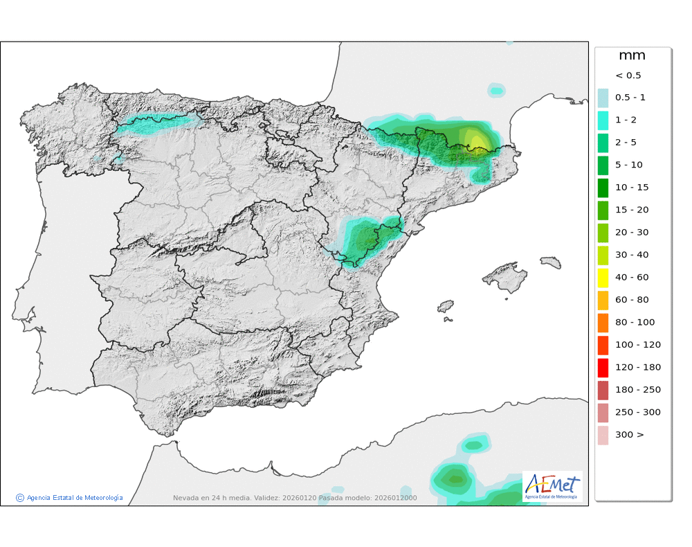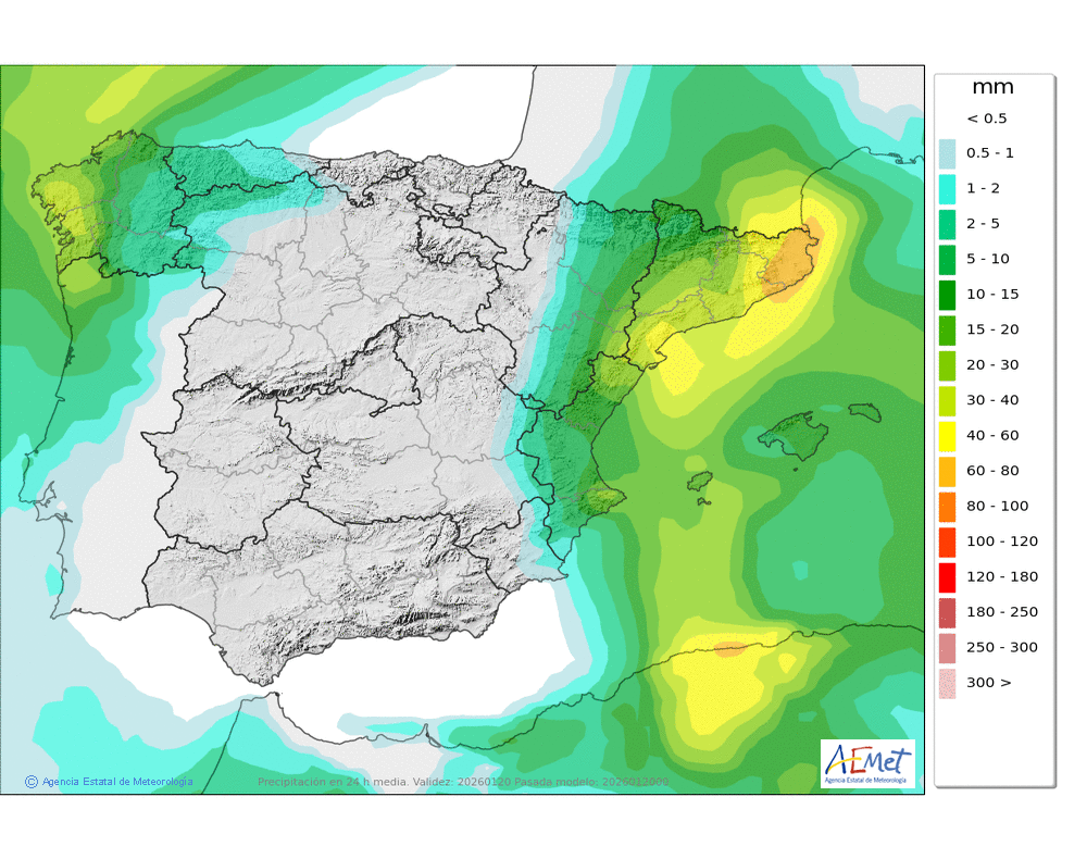 Elaboración de la predicción por la AEMET y el servicio de alerta meteorológica en Europa. (última actualización: 2026-01-20T06:57:12)