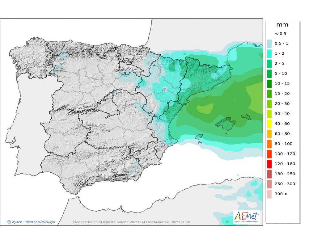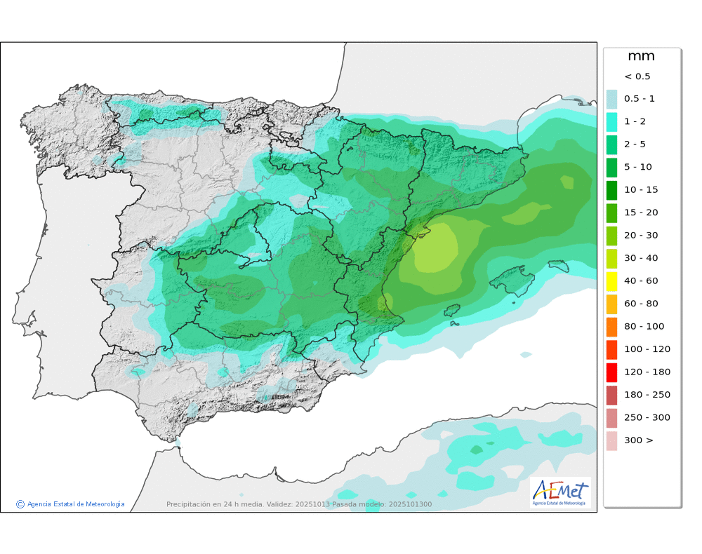 Elaboración de la predicción por la AEMET y el servicio de alerta meteorológica en Europa. (última actualización: 2025-10-13T13:10:08)