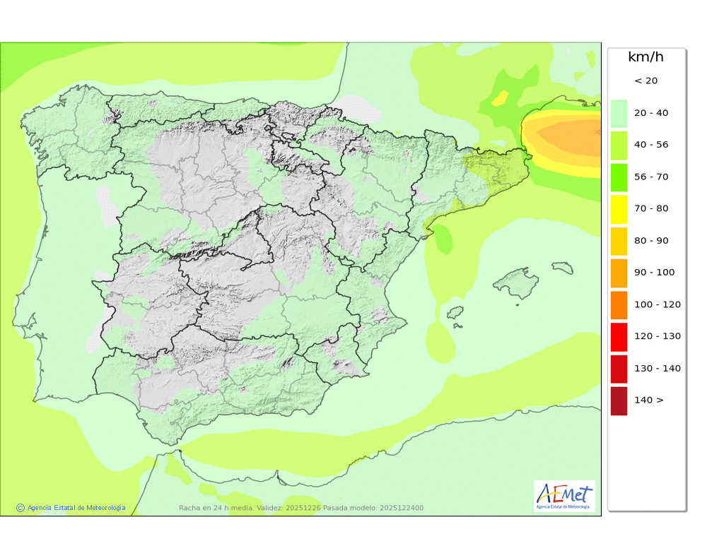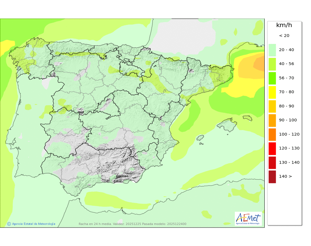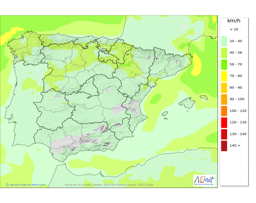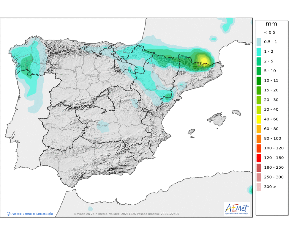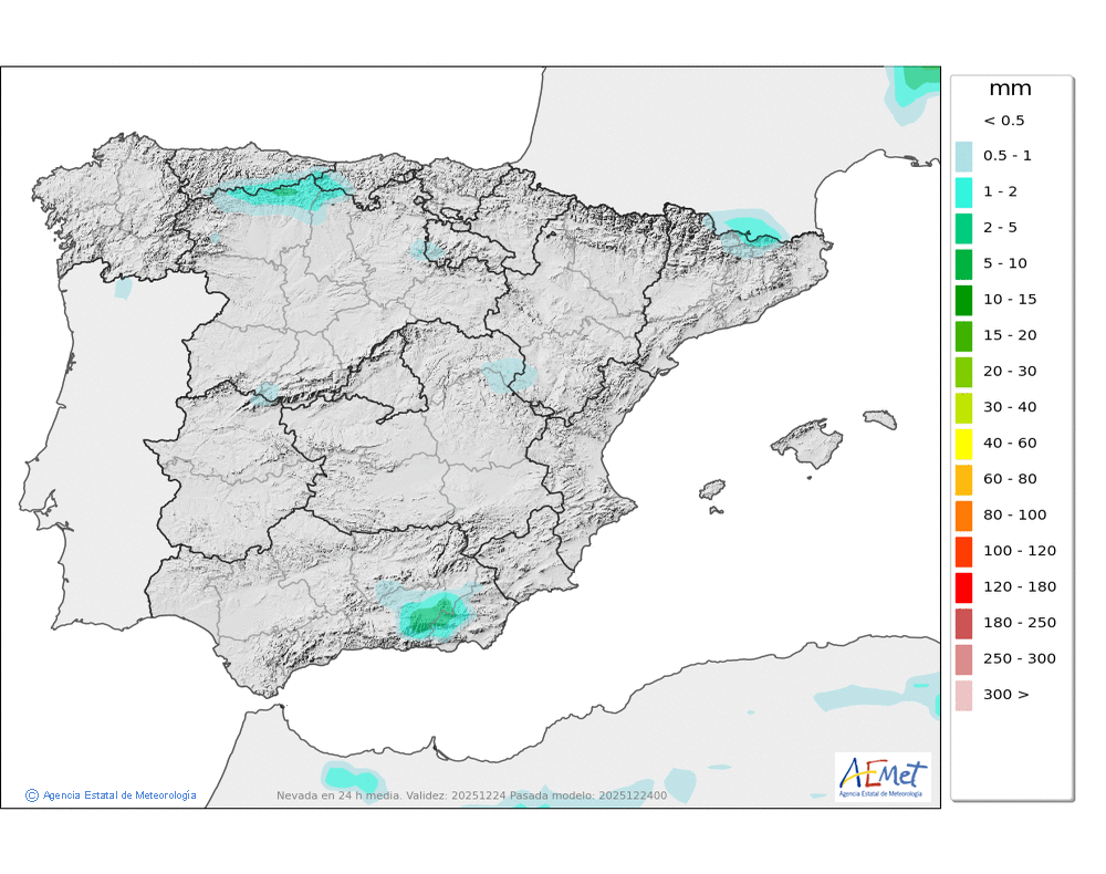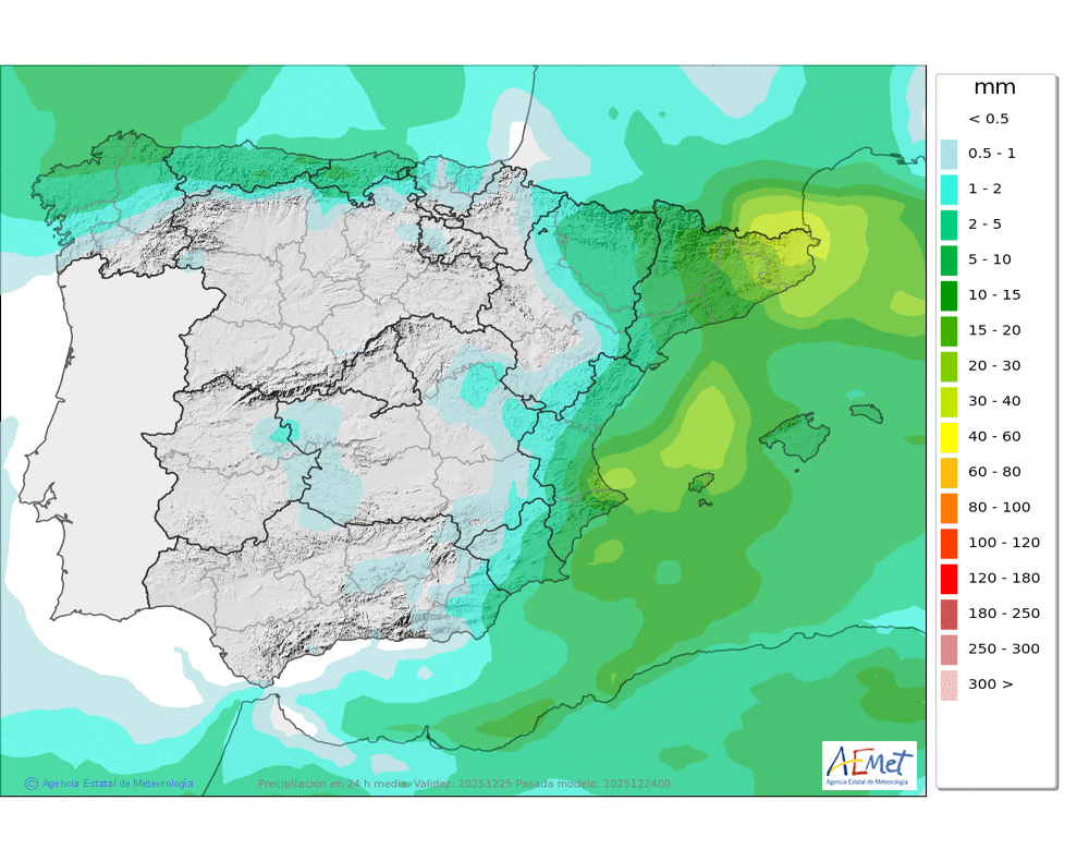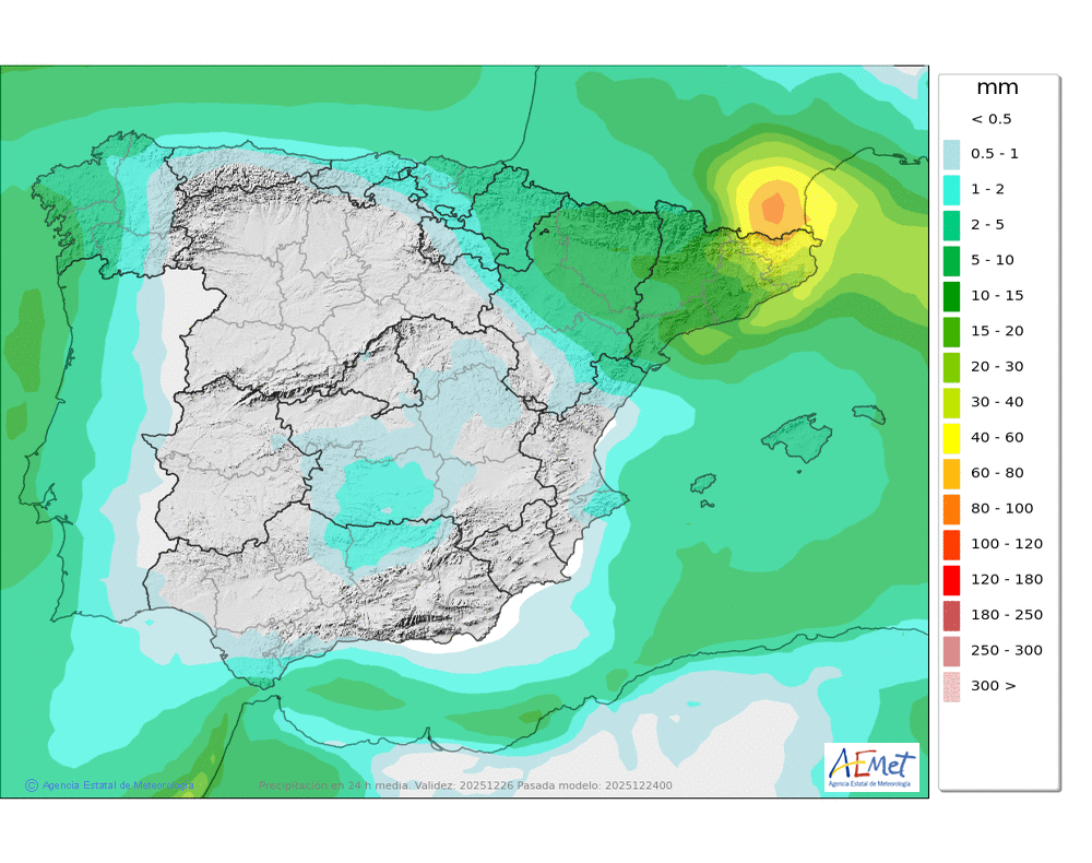 Elaboración de la predicción por la AEMET y el servicio de alerta meteorológica en Europa. (última actualización: 2025-12-24T07:31:07)