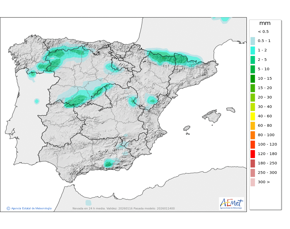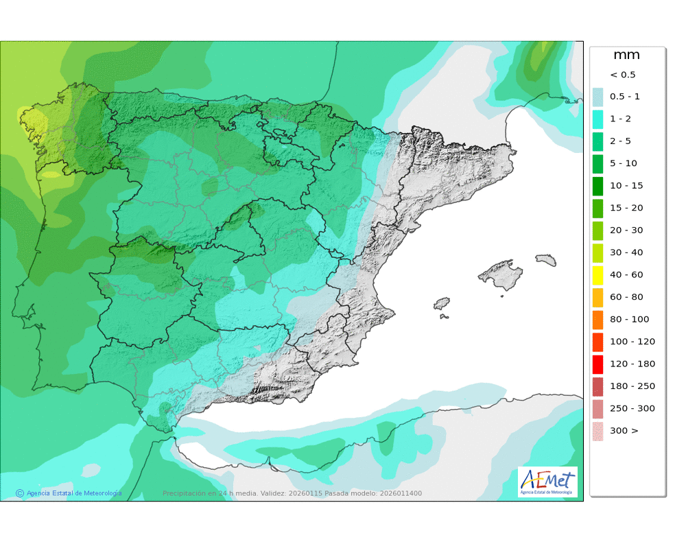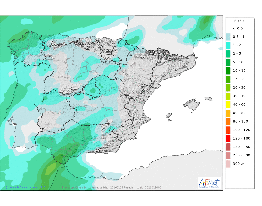 Elaboración de la predicción por la AEMET y el servicio de alerta meteorológica en Europa. (última actualización: 2026-01-14T18:42:12)