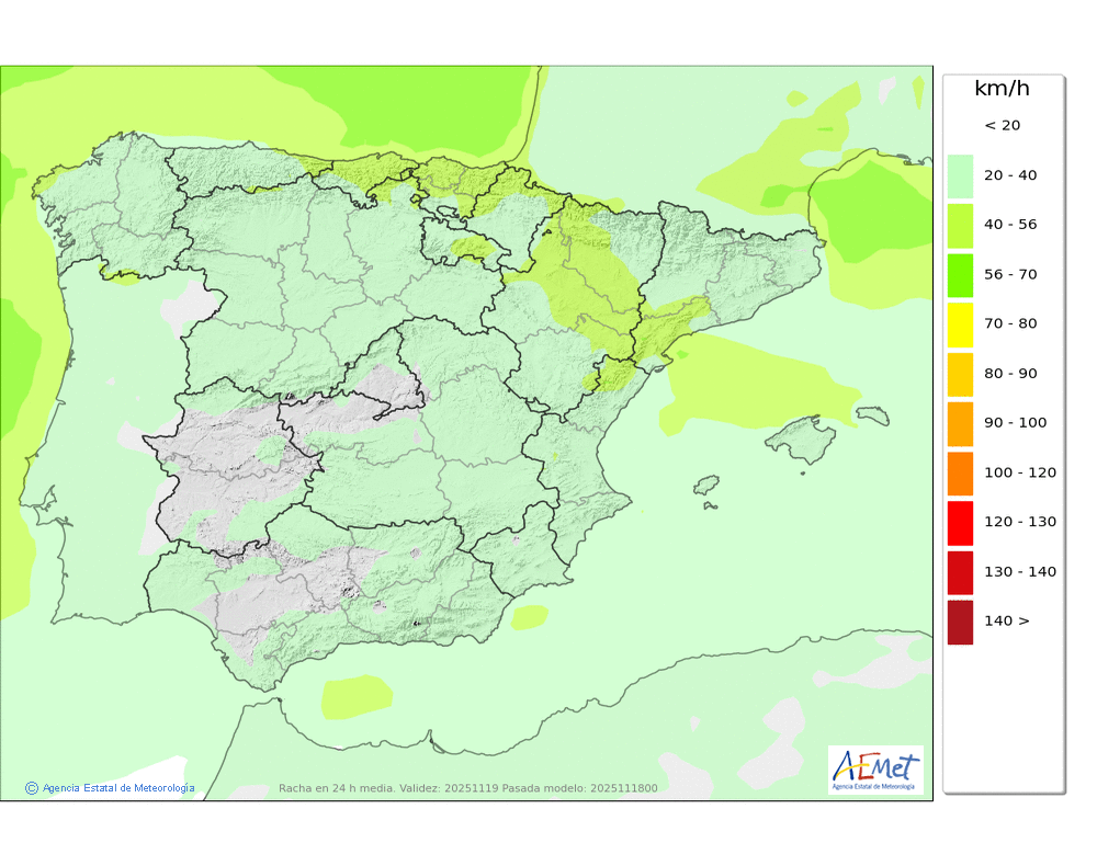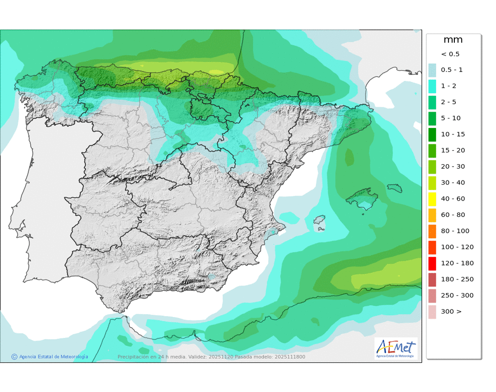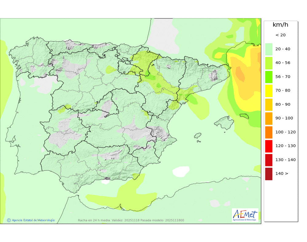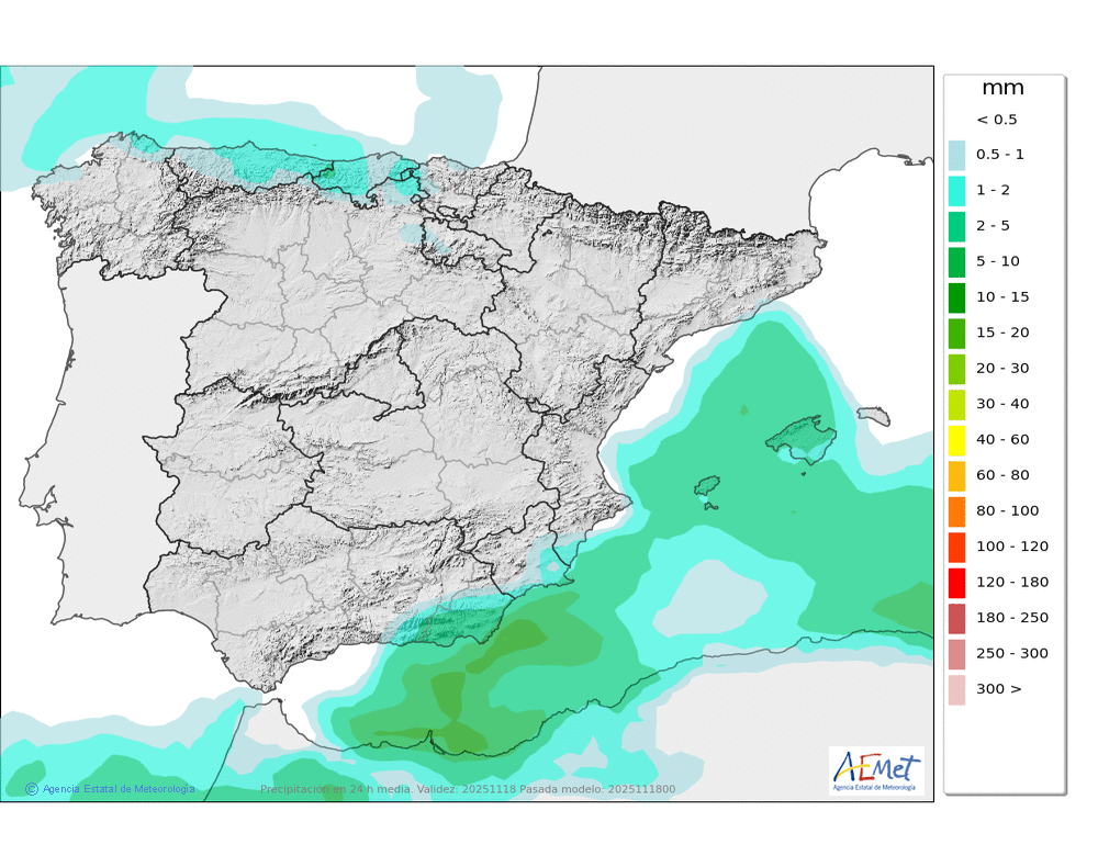 Elaboración de la predicción por la AEMET y el servicio de alerta meteorológica en Europa. (última actualización: 2025-11-18T07:59:06)