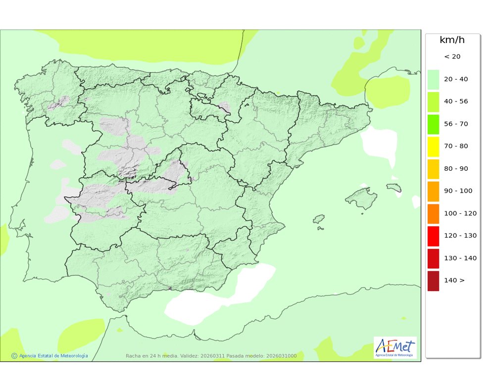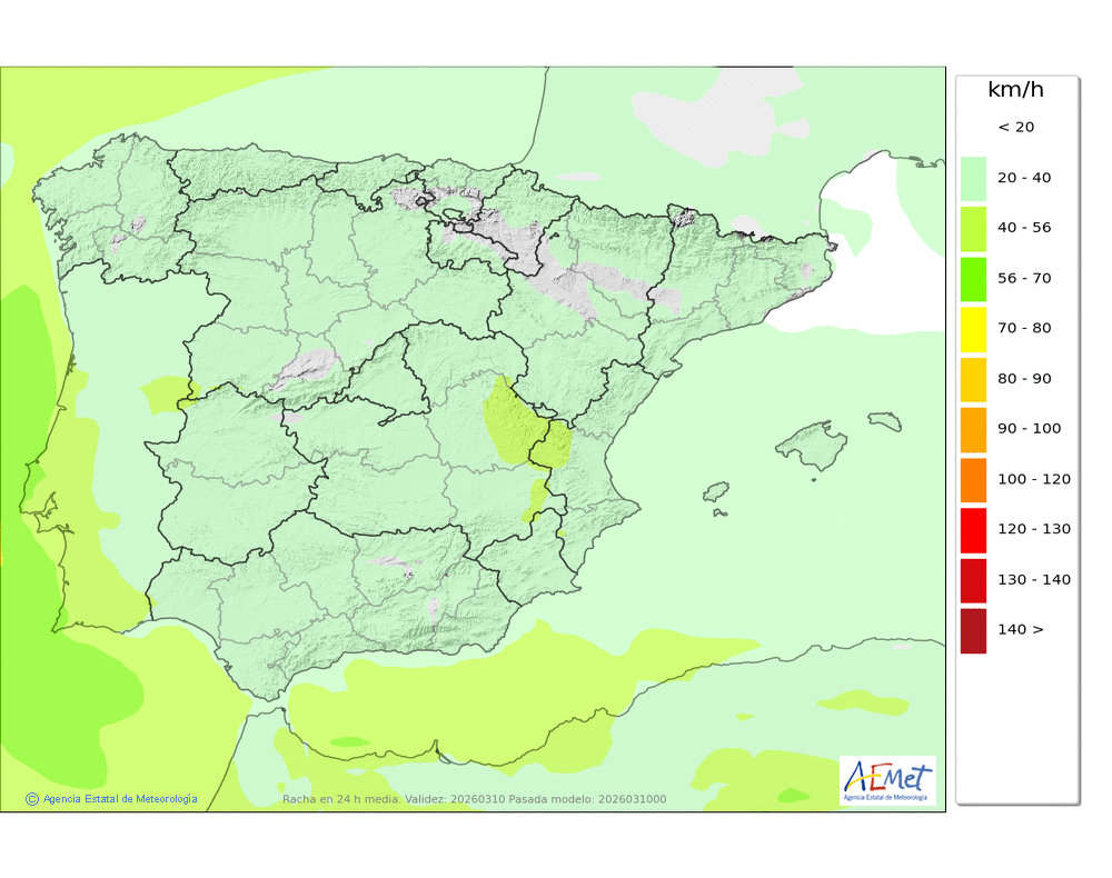| Racha máxima del viento | |||