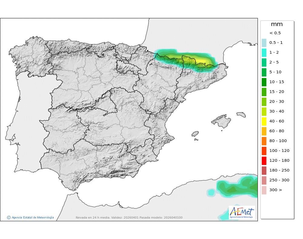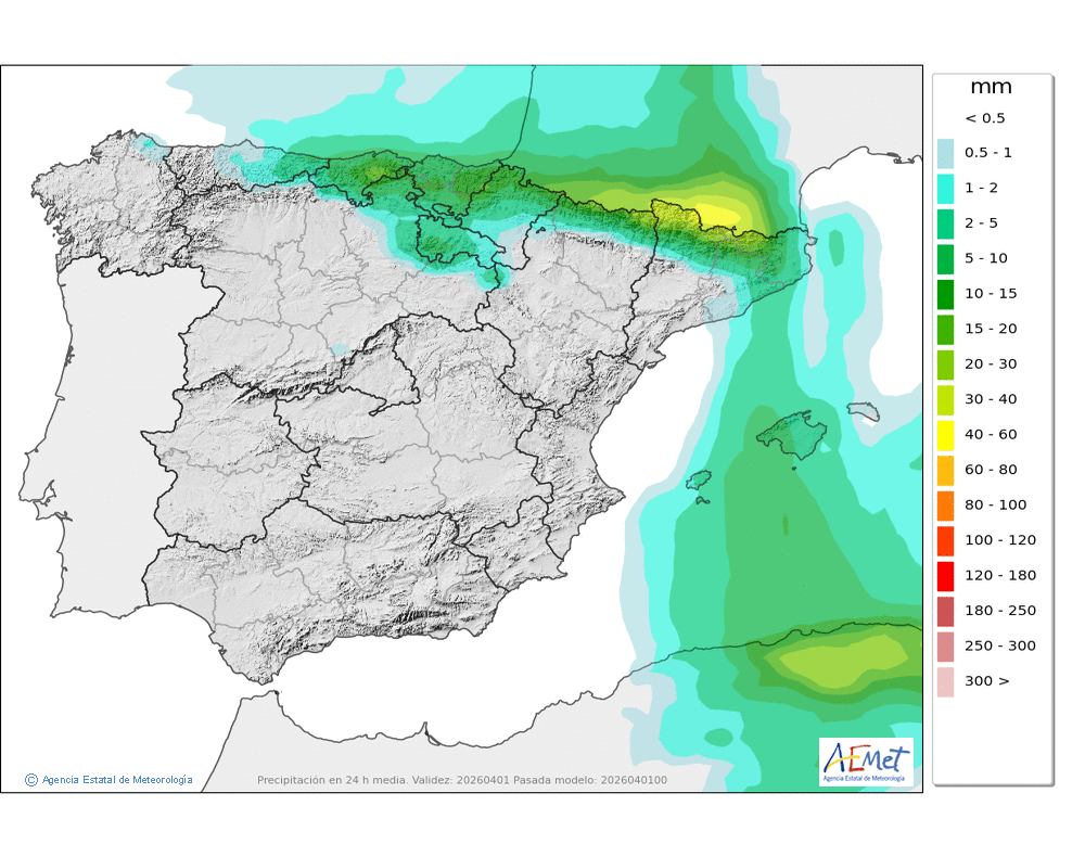 Elaboración de la predicción por la AEMET y el servicio de alerta meteorológica en Europa. (última actualización: 2026-04-01T08:57:12)