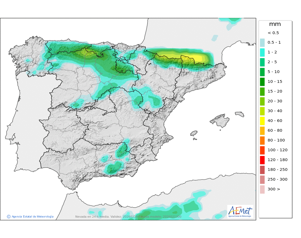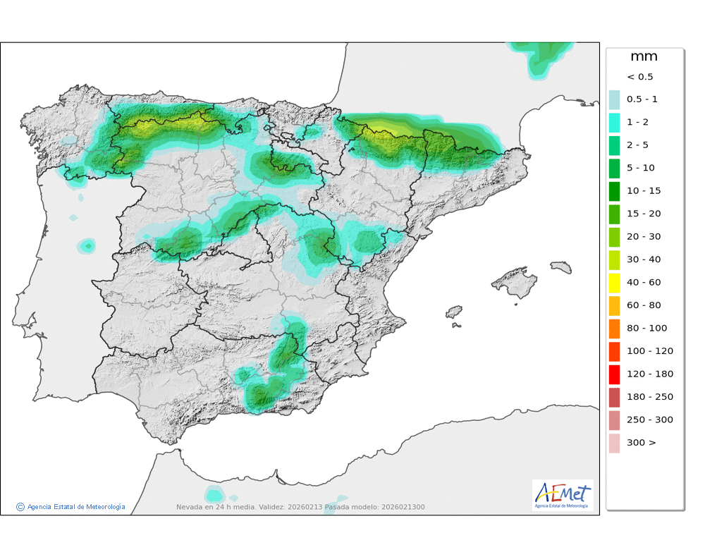 Elaboración de la predicción por la AEMET y el servicio de alerta meteorológica en Europa. (última actualización: 2026-02-13T18:52:11)