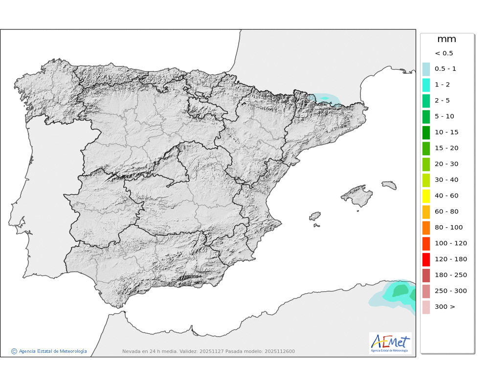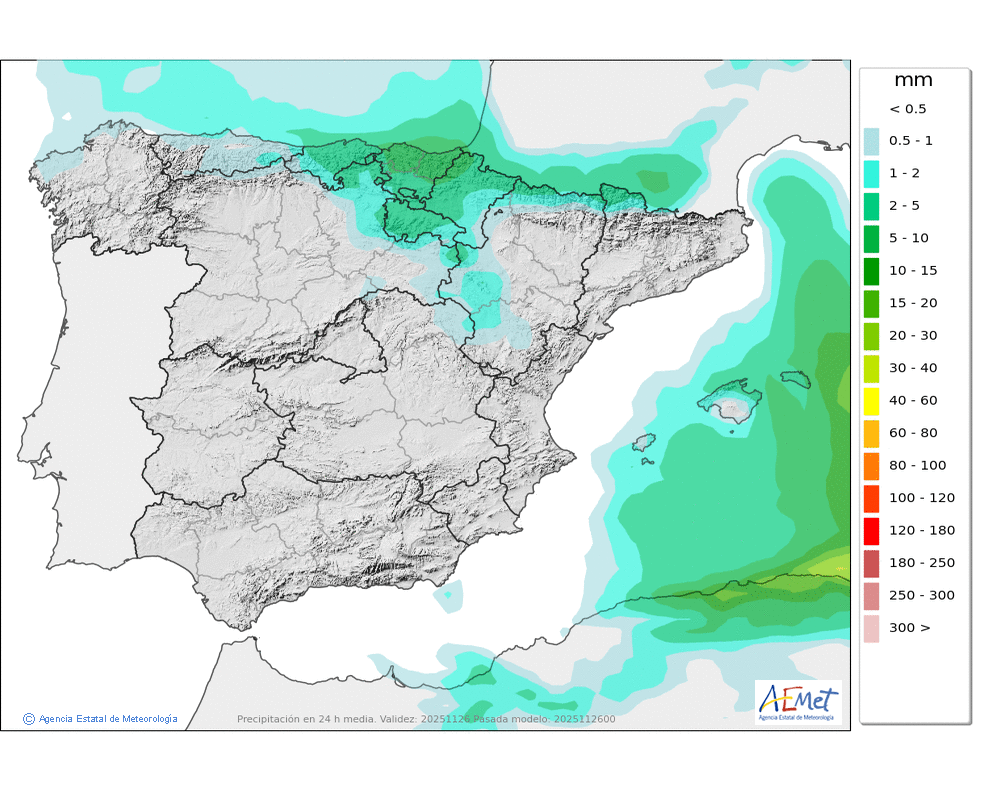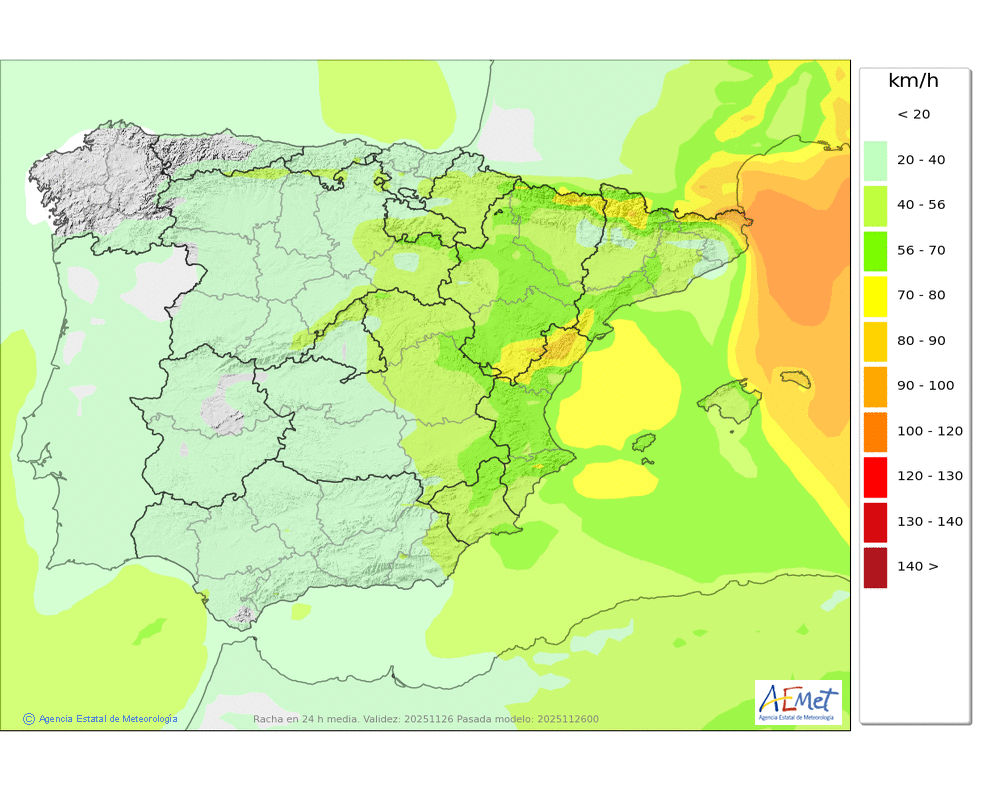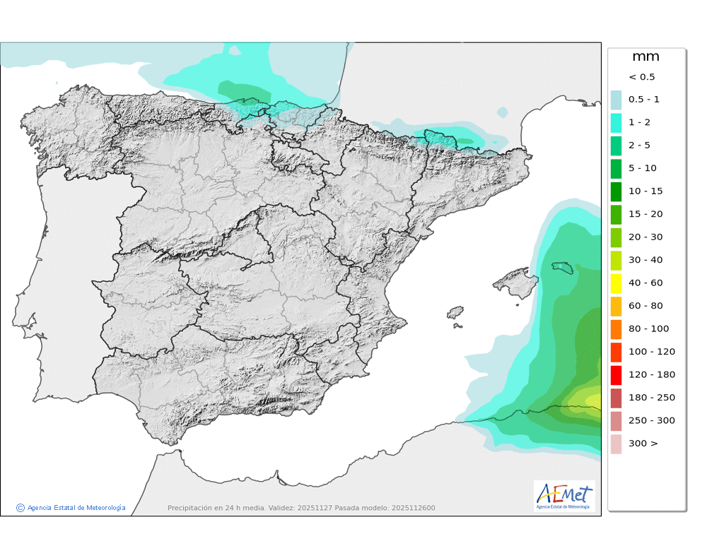 Elaboración de la predicción por la AEMET y el servicio de alerta meteorológica en Europa. (última actualización: 2025-11-26T06:37:13)