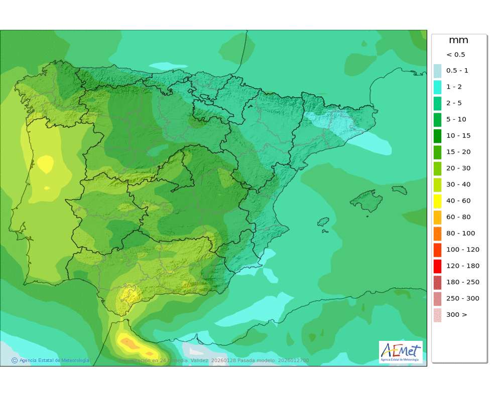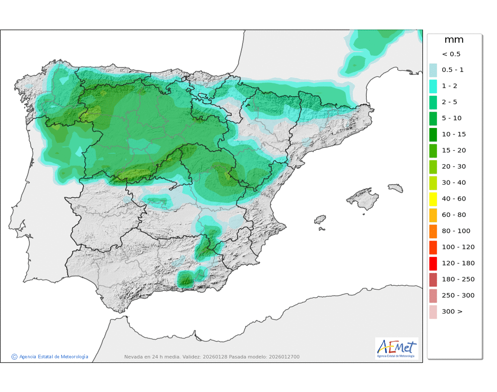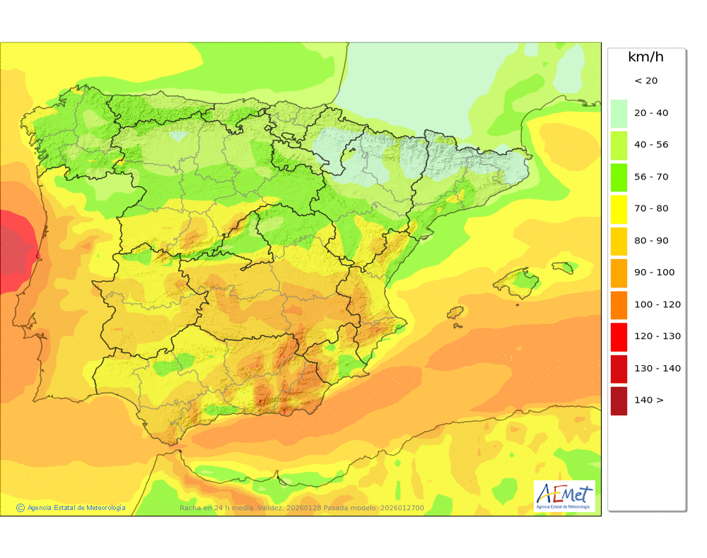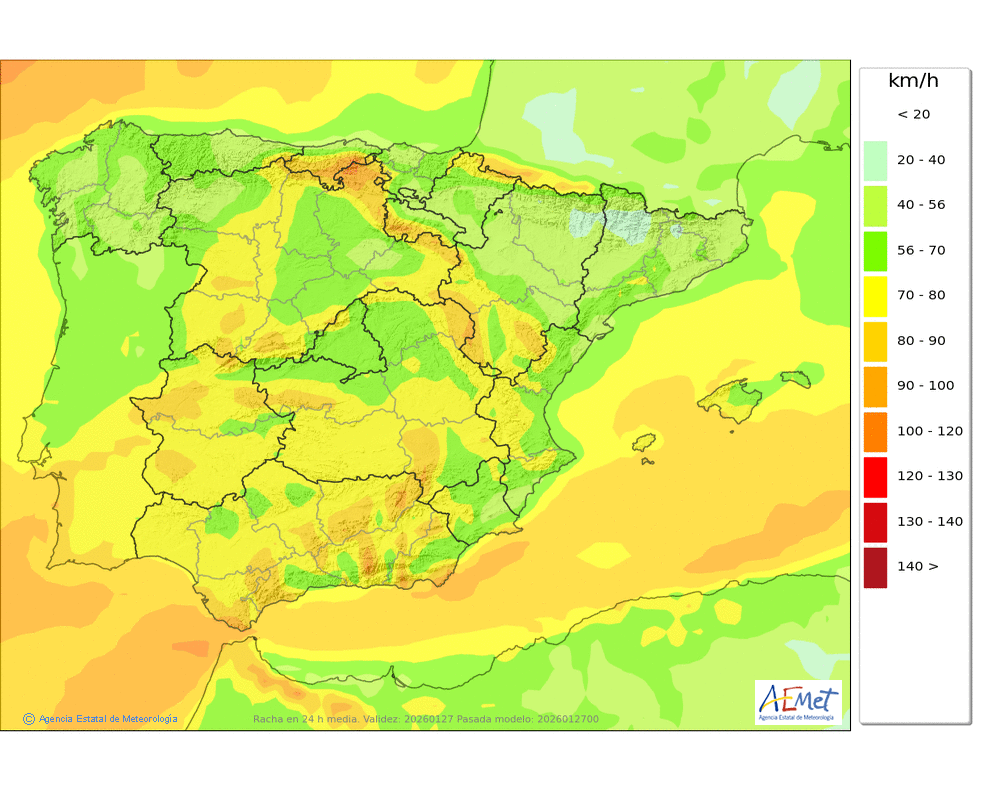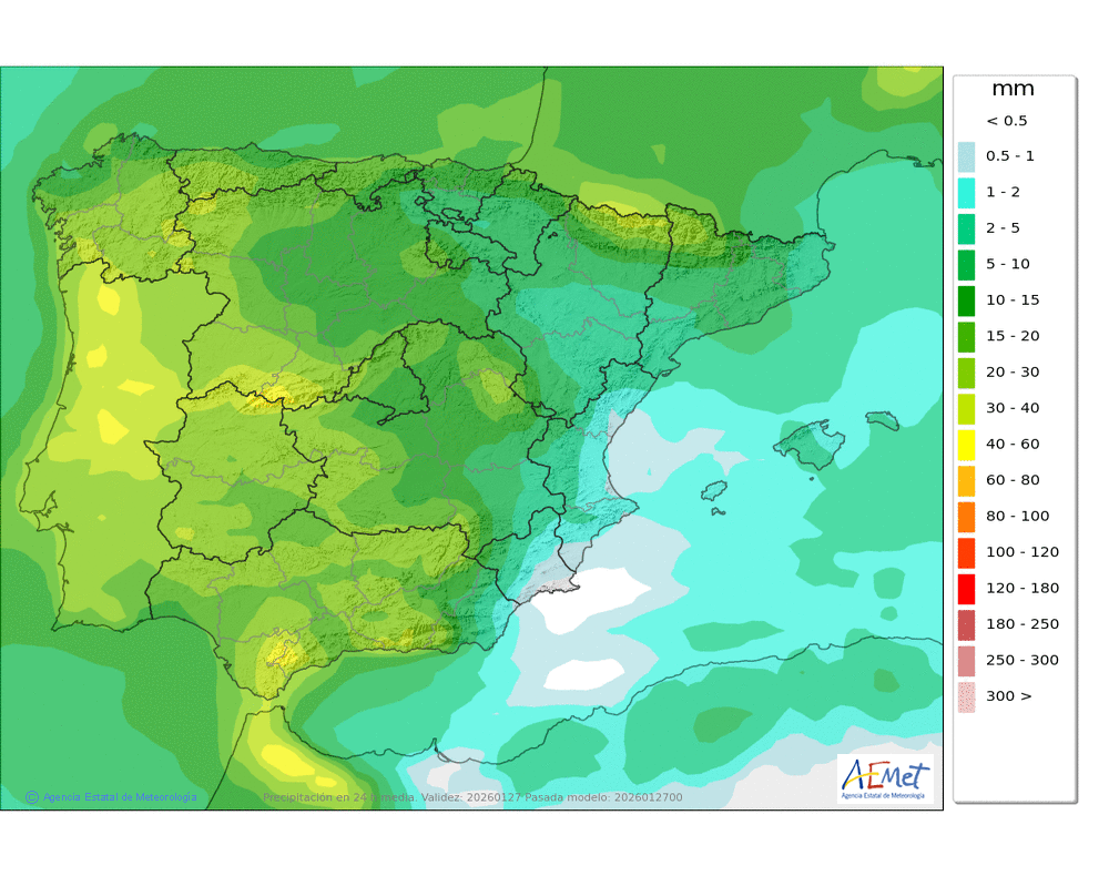 Elaboración de la predicción por la AEMET y el servicio de alerta meteorológica en Europa. (última actualización: 2026-01-27T08:47:13)