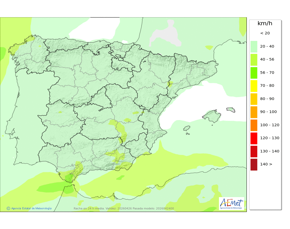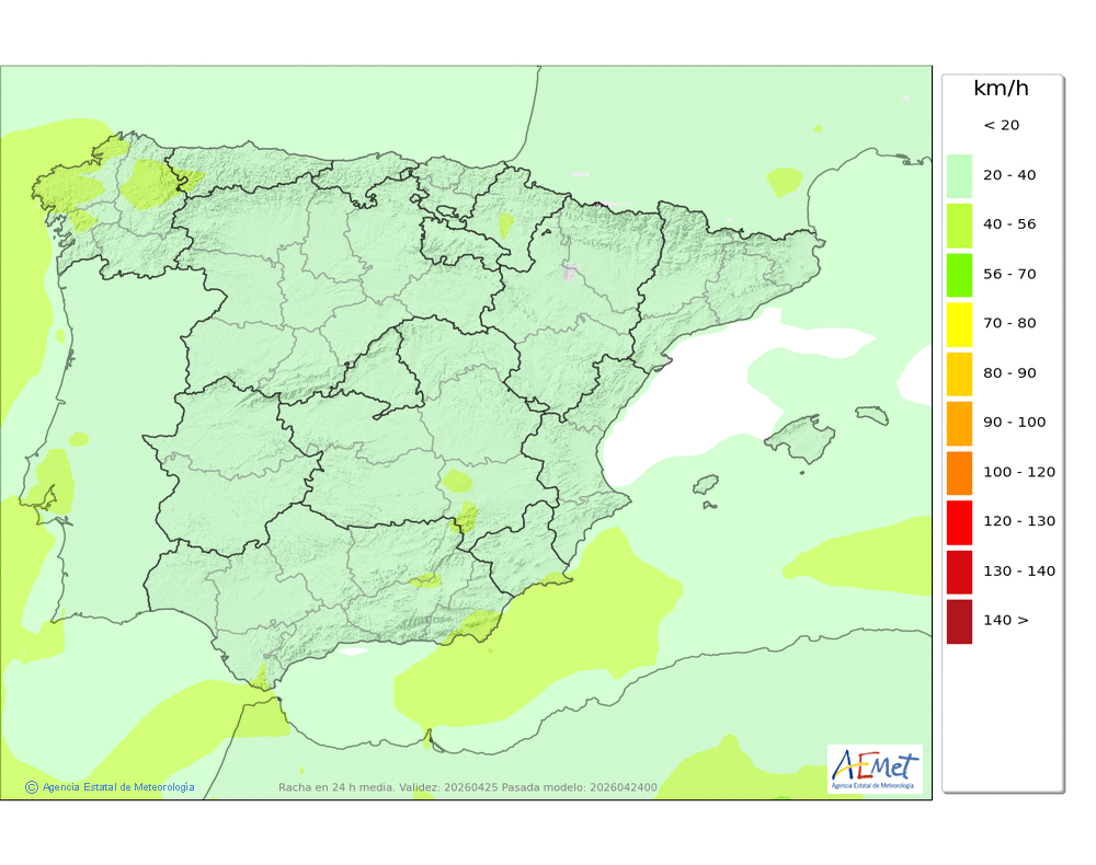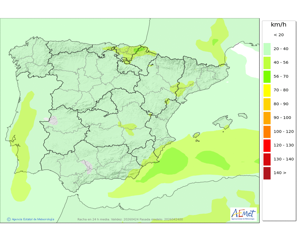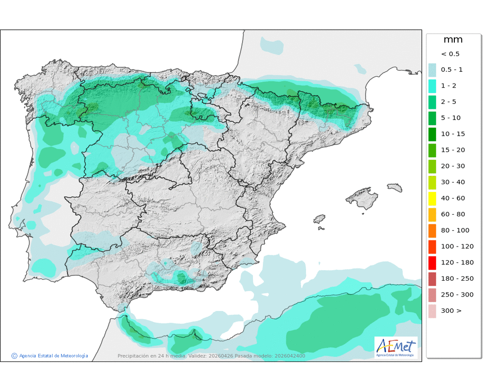 Elaboración de la predicción por la AEMET y el servicio de alerta meteorológica en Europa. (última actualización: 2026-04-24T06:47:12)