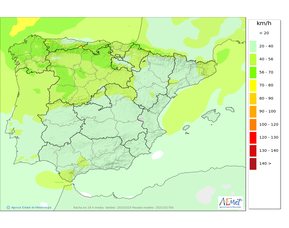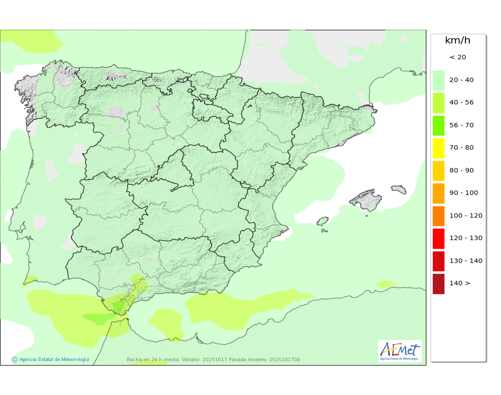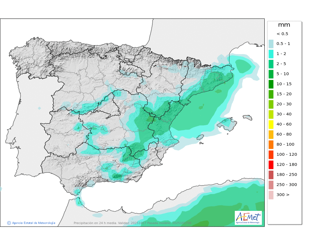 Elaboración de la predicción por la AEMET y el servicio de alerta meteorológica en Europa. (última actualización: 2025-10-17T06:32:12)