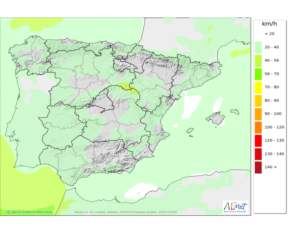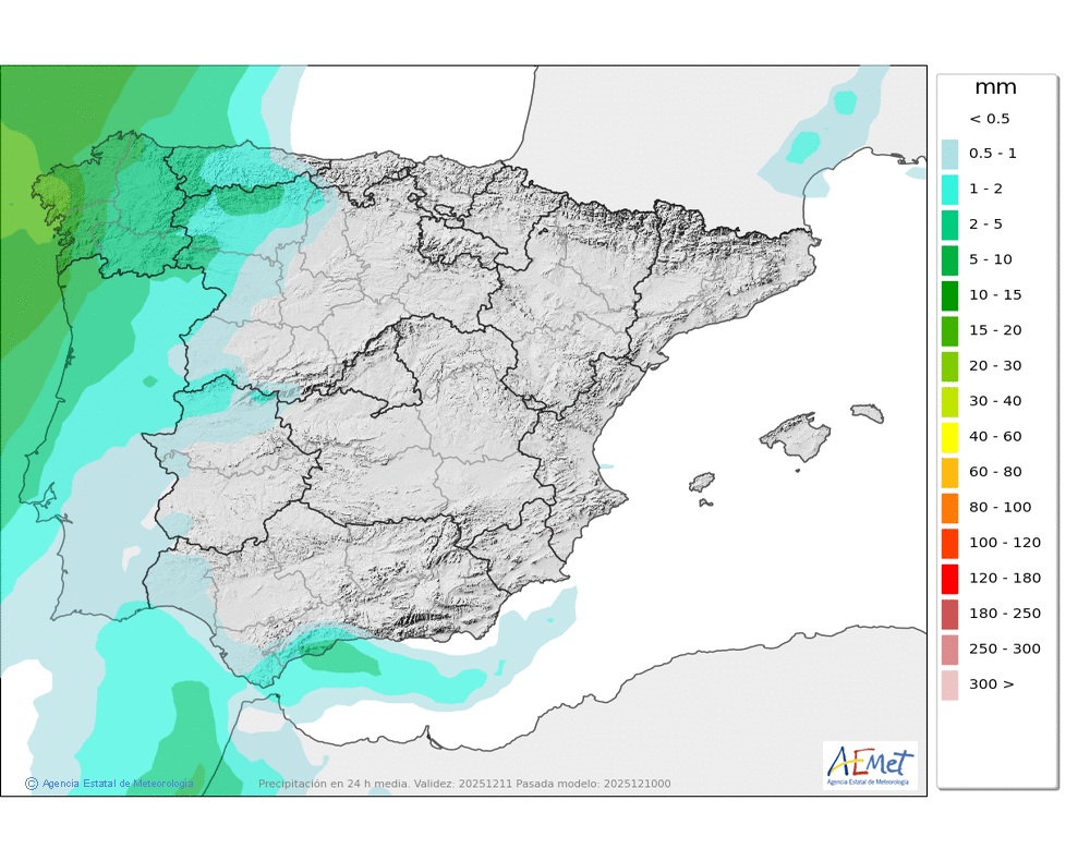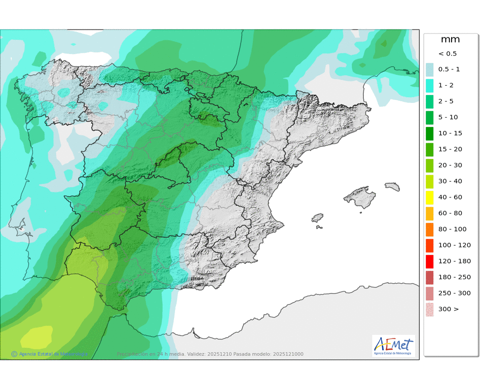 Elaboración de la predicción por la AEMET y el servicio de alerta meteorológica en Europa. (última actualización: 2025-12-10T06:47:10)