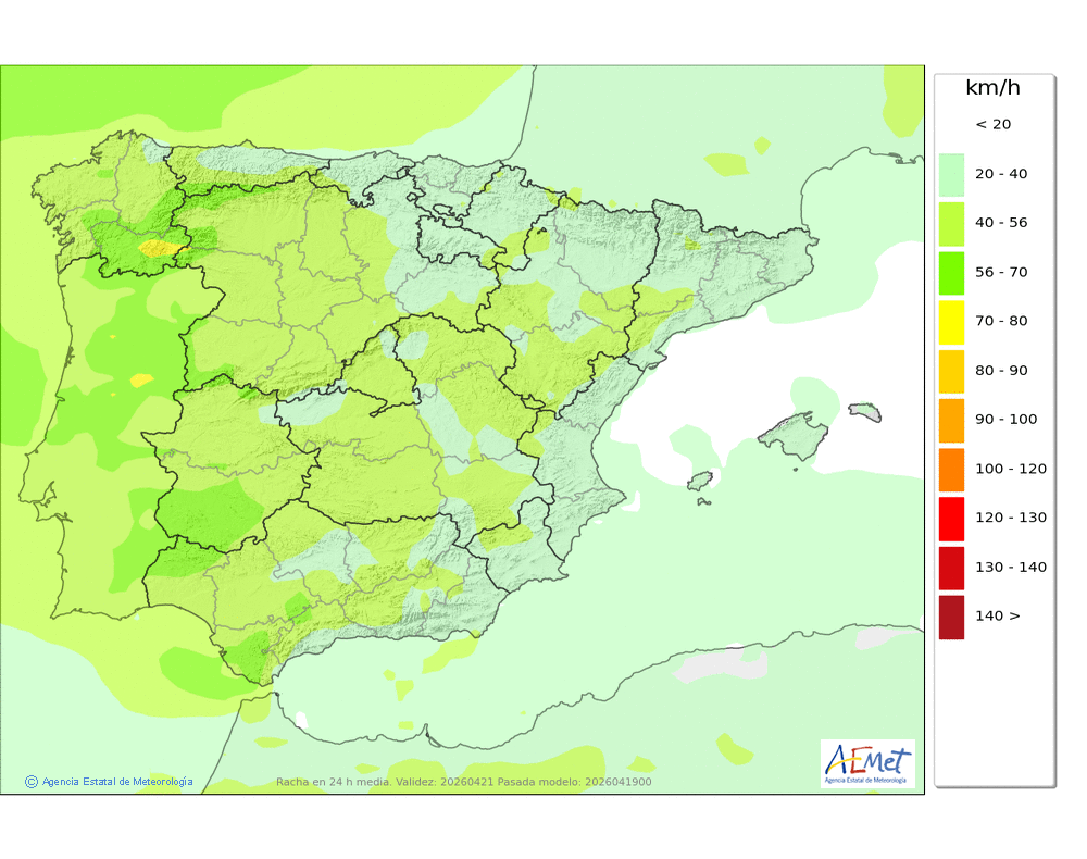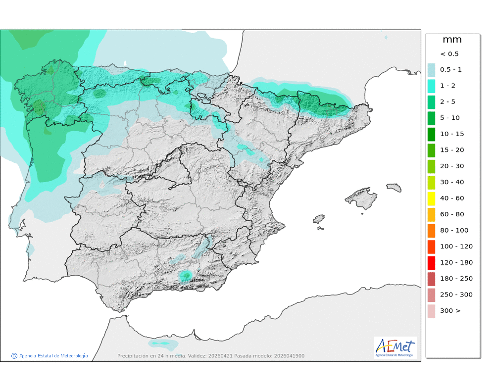 Elaboración de la predicción por la AEMET y el servicio de alerta meteorológica en Europa. (última actualización: 2026-04-21T08:08:06)