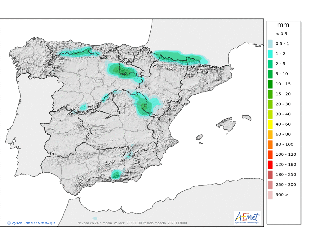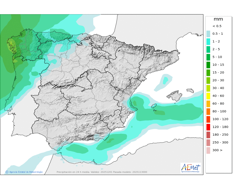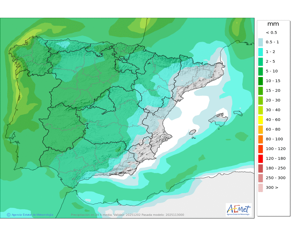Elaboración de la predicción por la AEMET y el servicio de alerta meteorológica en Europa. (última actualización: 2025-11-30T06:56:07)