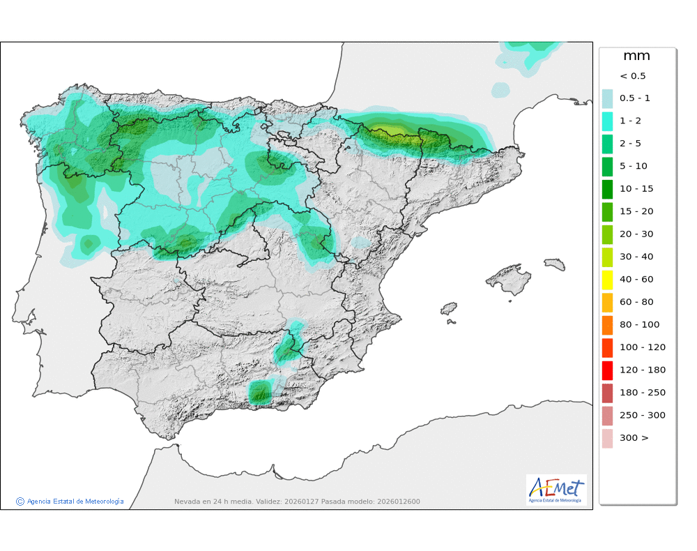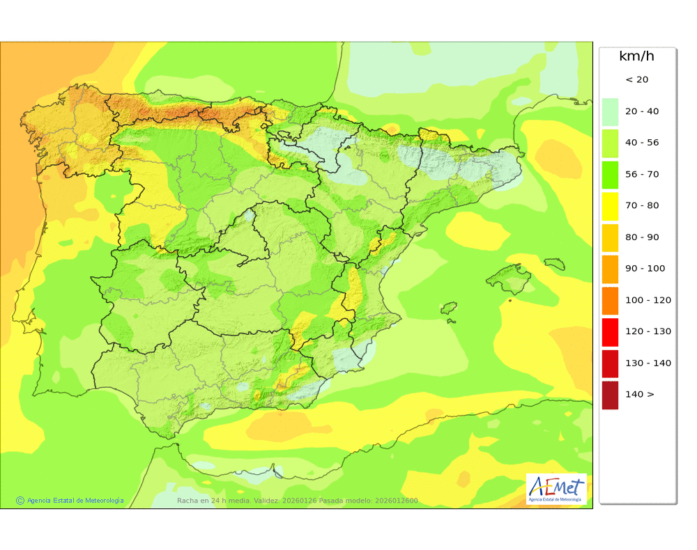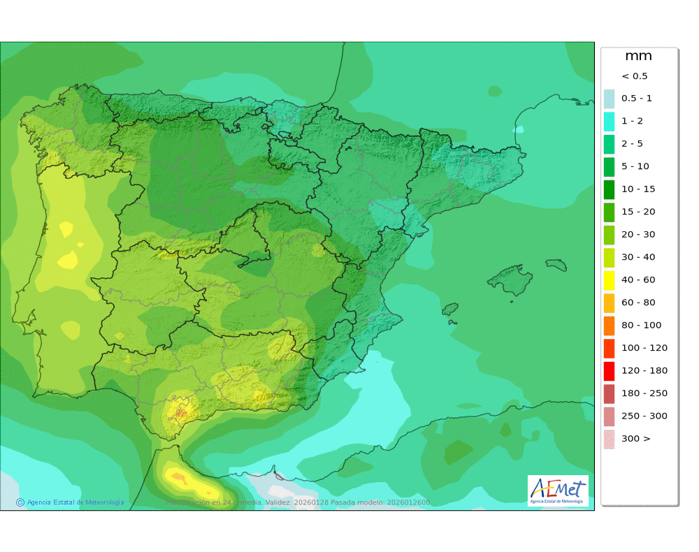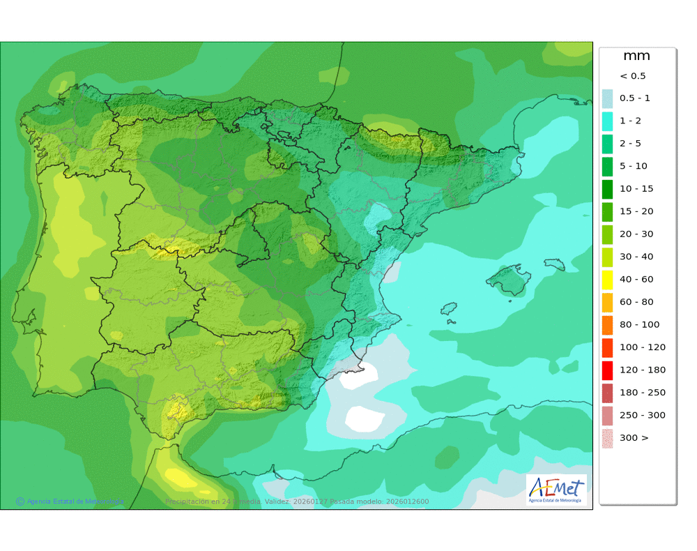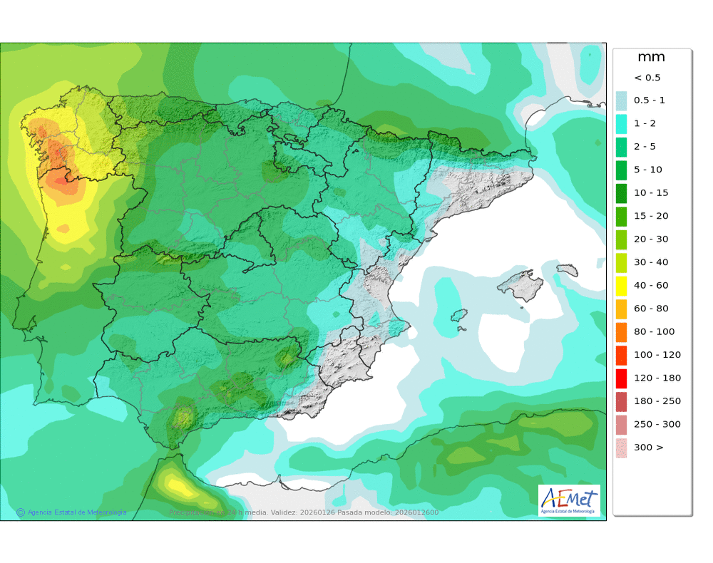 Elaboración de la predicción por la AEMET y el servicio de alerta meteorológica en Europa. (última actualización: 2026-01-25T20:52:11)