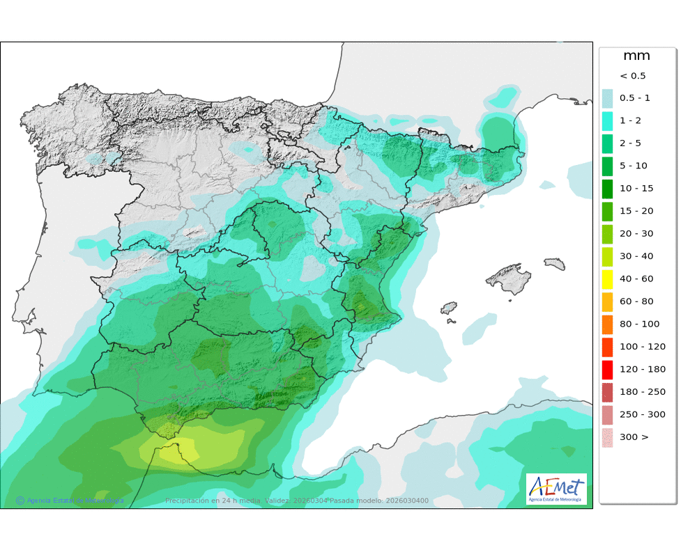 Elaboración de la predicción por la AEMET y el servicio de alerta meteorológica en Europa. (última actualización: 2026-03-04T15:41:06)