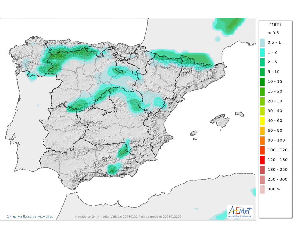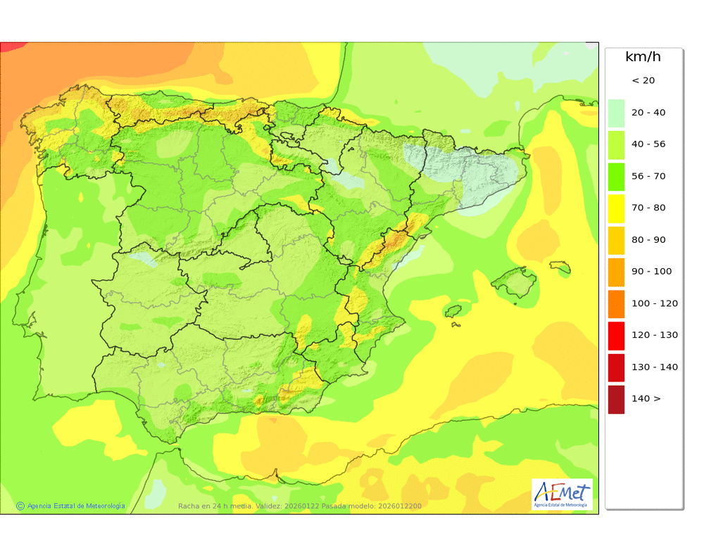 Elaboración de la predicción por la AEMET y el servicio de alerta meteorológica en Europa. (última actualización: 2026-01-22T08:44:09)