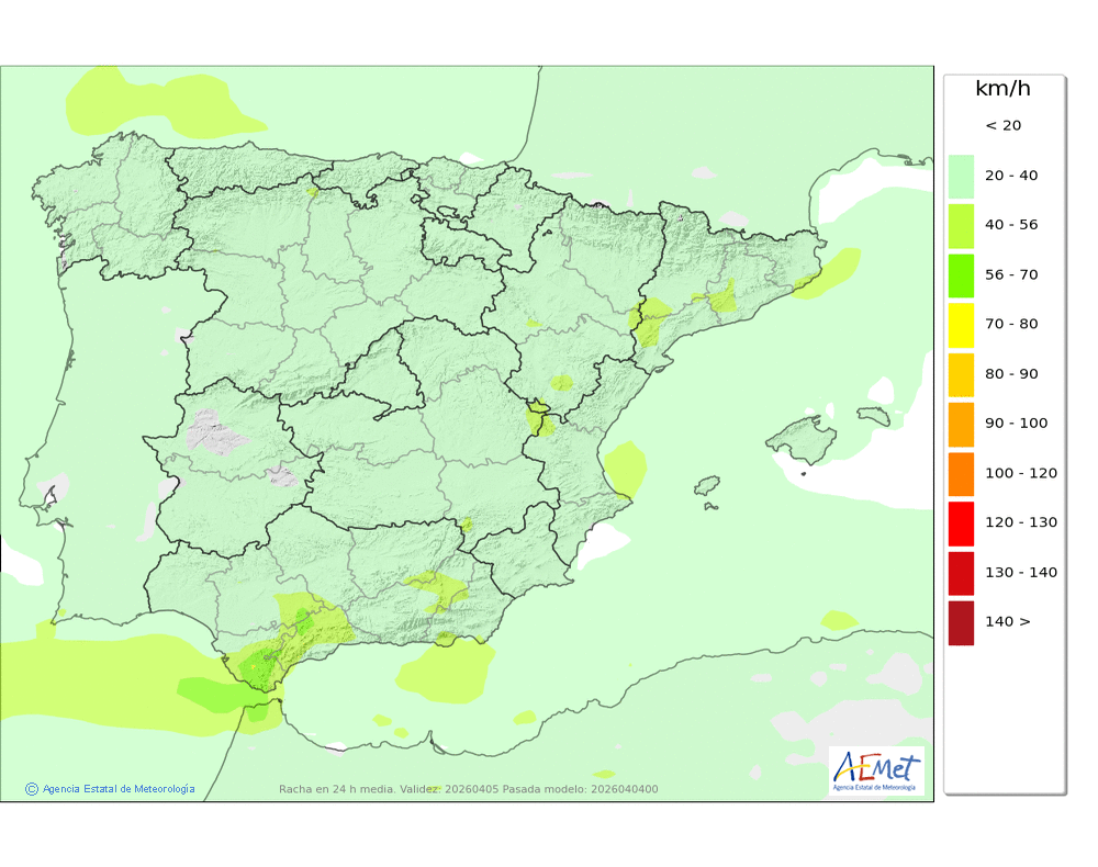Elaboración de la predicción por la AEMET y el servicio de alerta meteorológica en Europa. (última actualización: 2026-04-04T20:52:12)