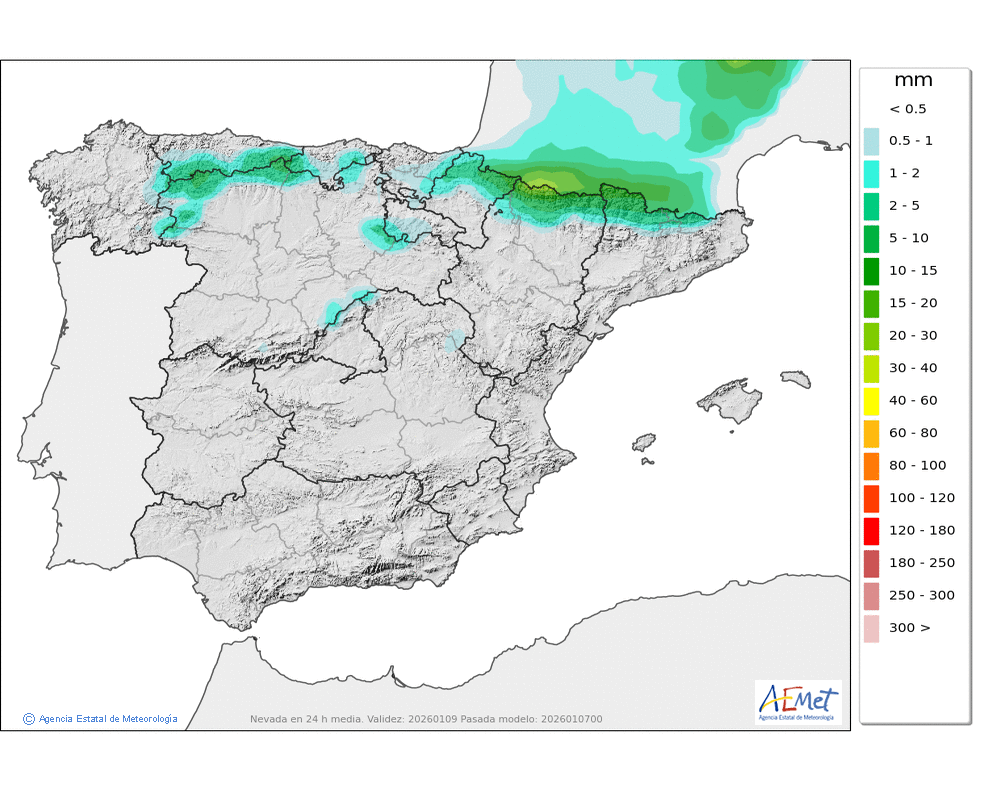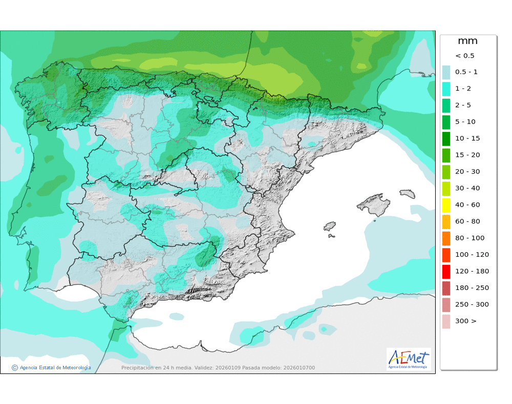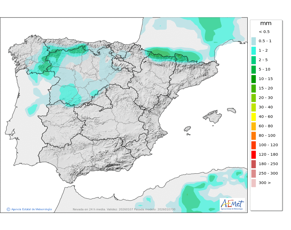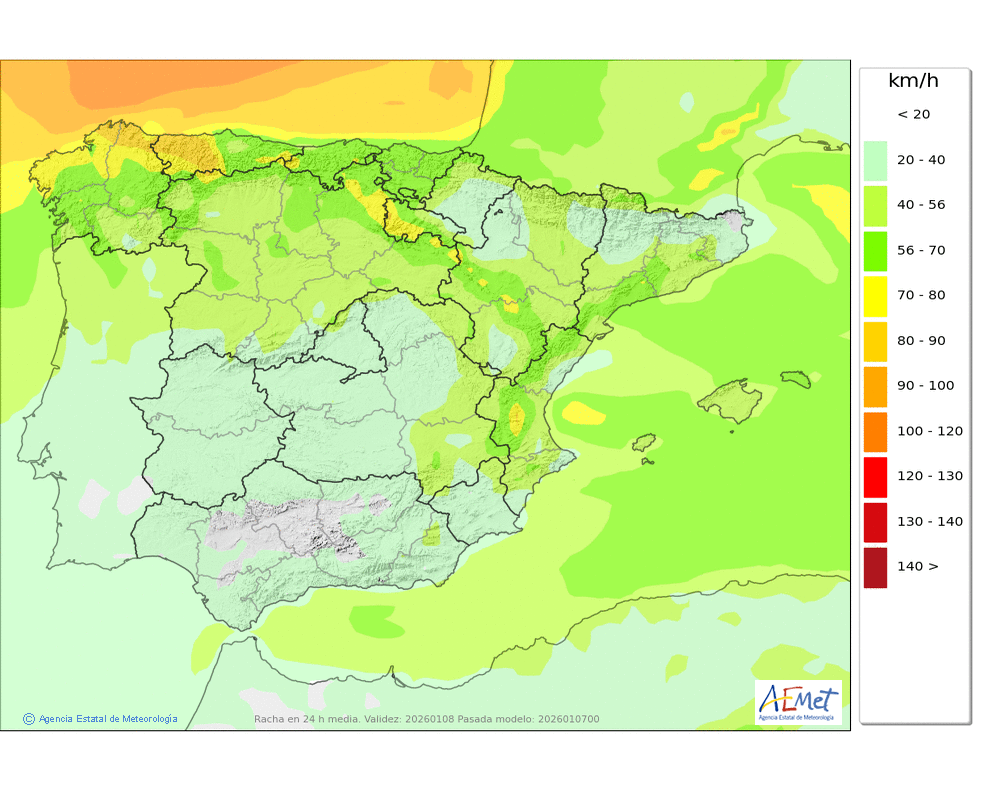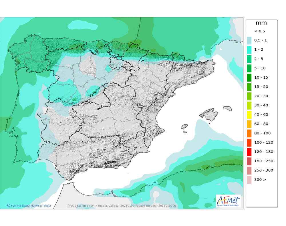 Elaboración de la predicción por la AEMET y el servicio de alerta meteorológica en Europa. (última actualización: 2026-01-07T08:27:12)