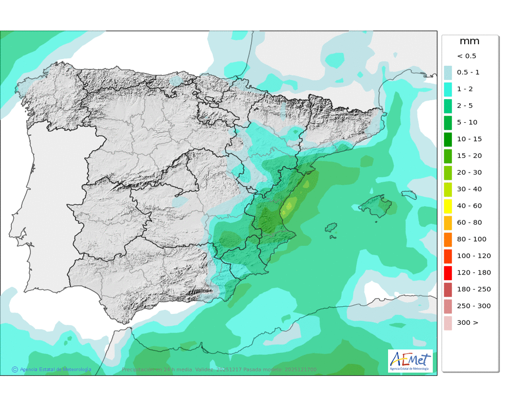 Elaboración de la predicción por la AEMET y el servicio de alerta meteorológica en Europa. (última actualización: 2025-12-17T07:32:11)
