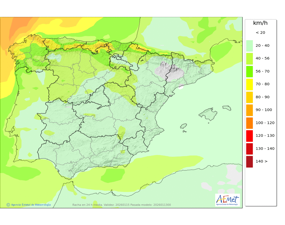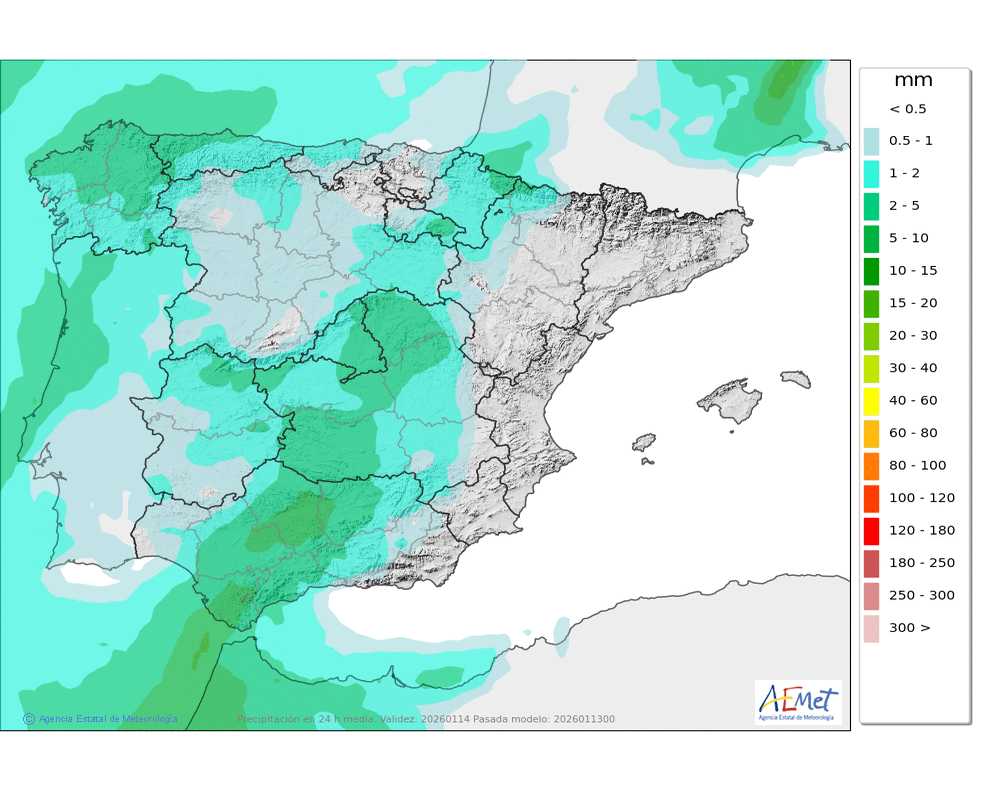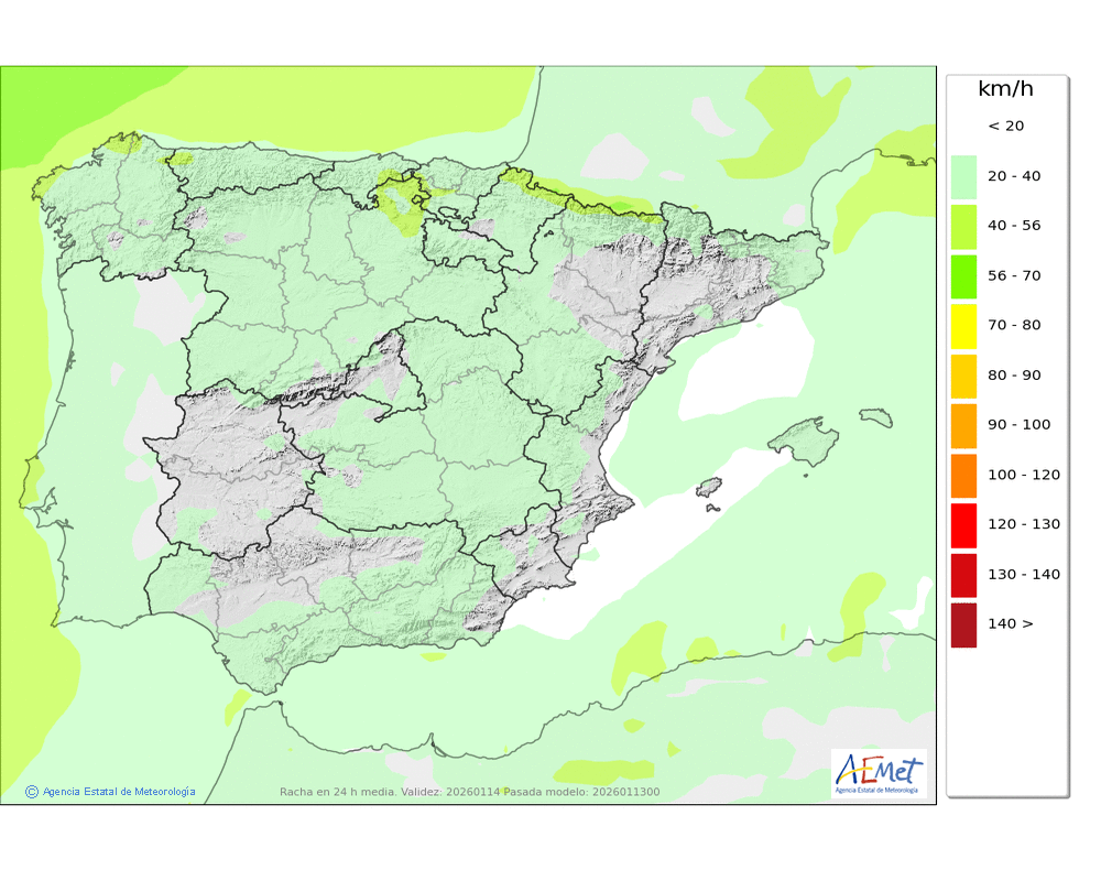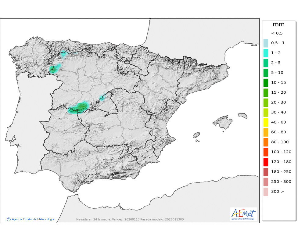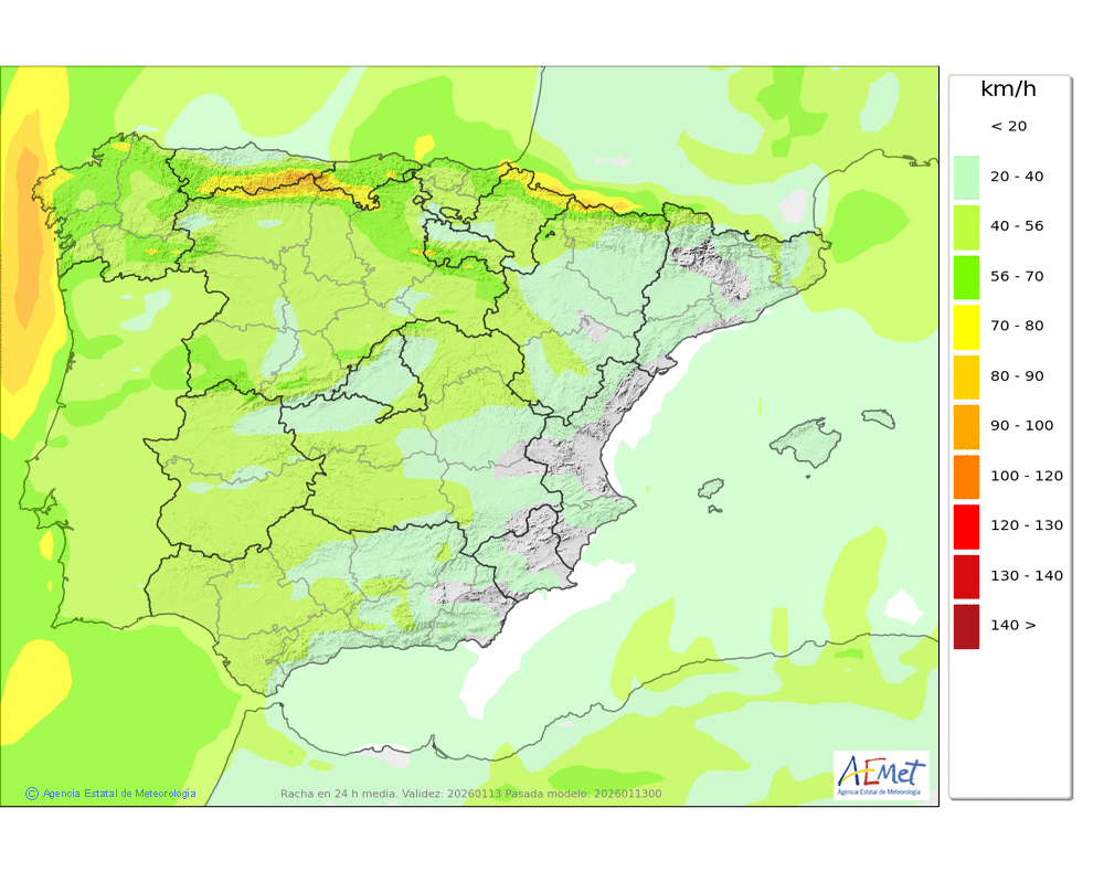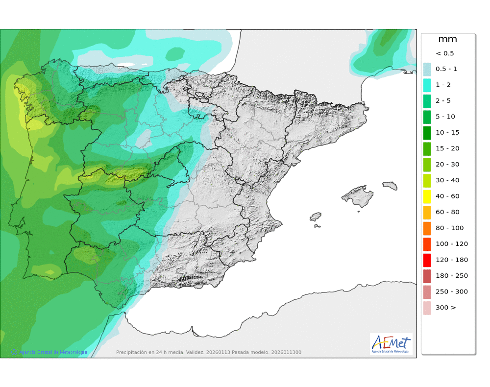 Elaboración de la predicción por la AEMET y el servicio de alerta meteorológica en Europa. (última actualización: 2026-01-13T19:40:10)