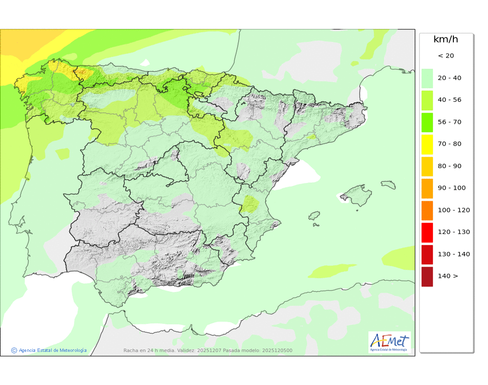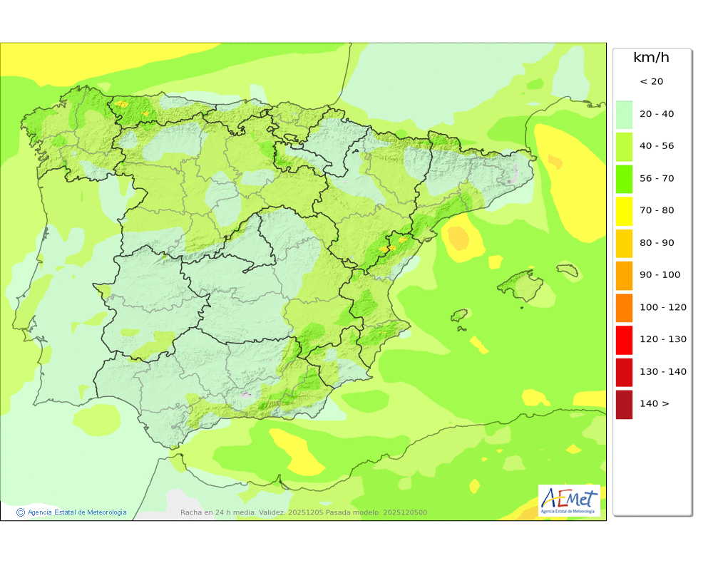 | Racha máxima del viento (km/h) | |||||||||||||||||||||||
