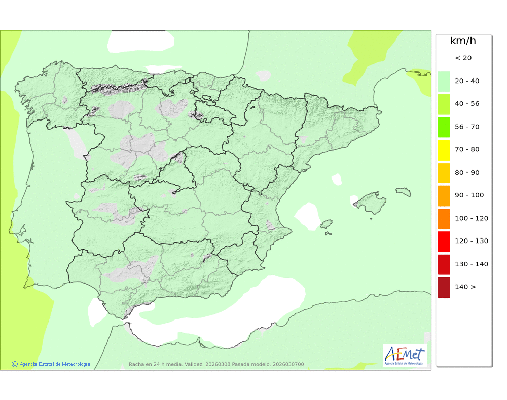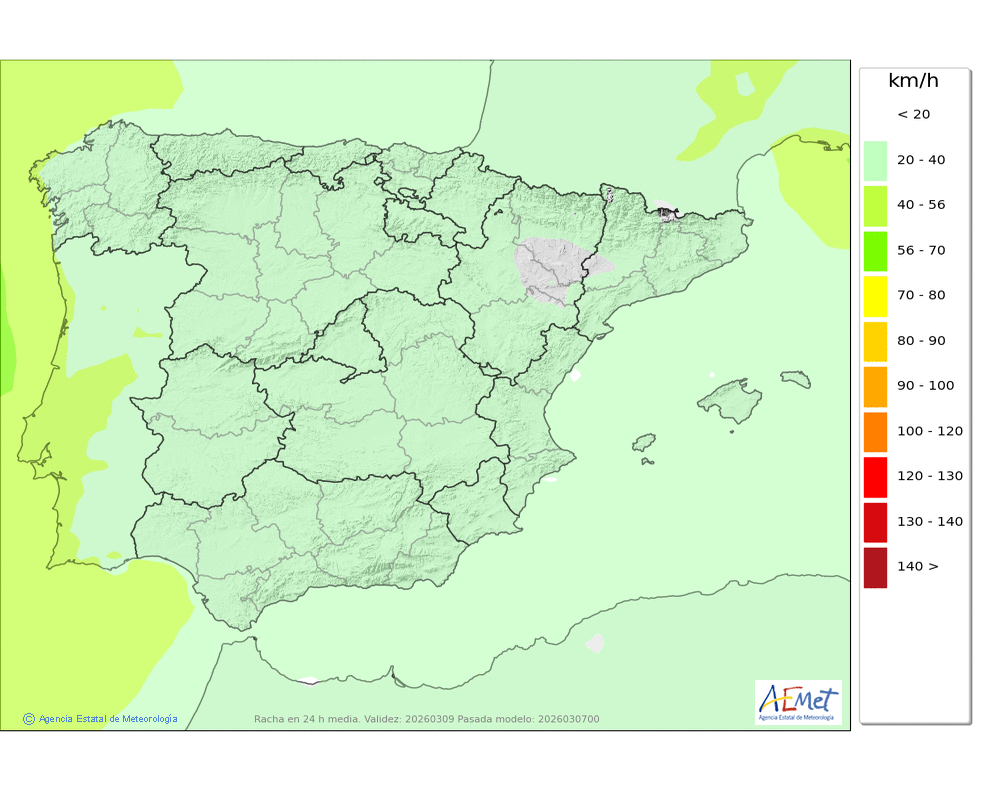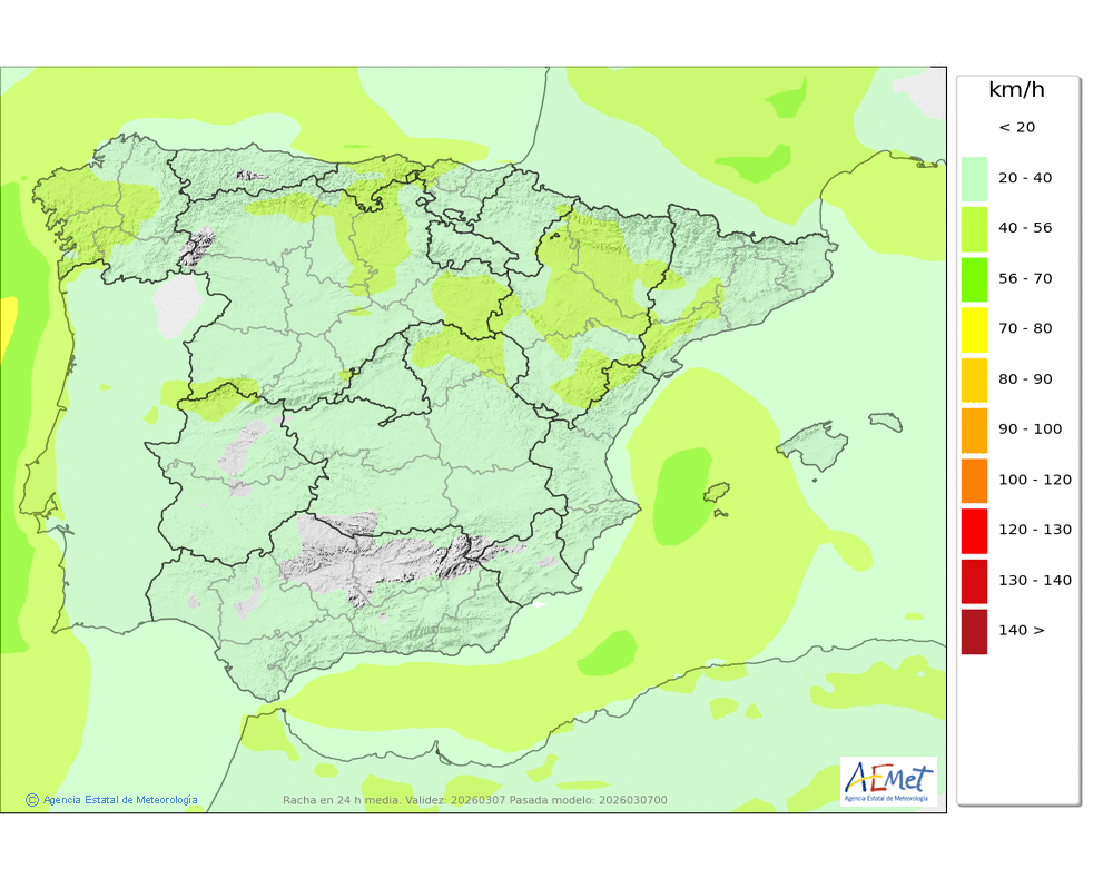 | Racha máxima del viento (km/h) | |||||||||||||||||||||||