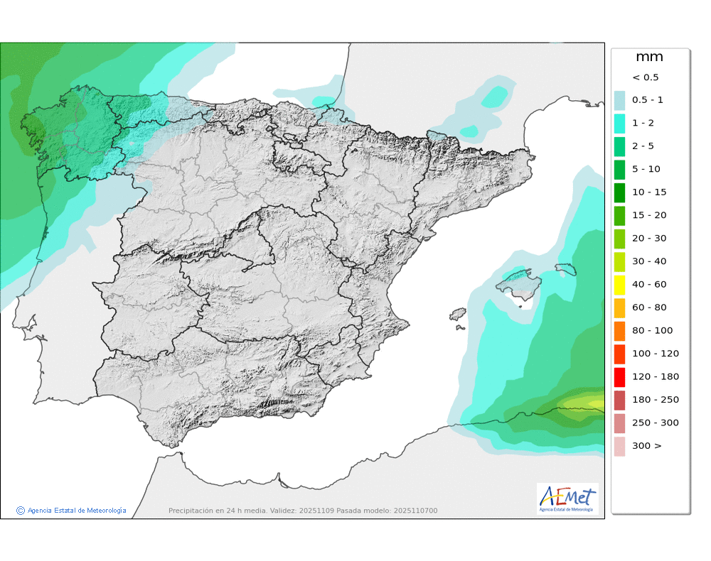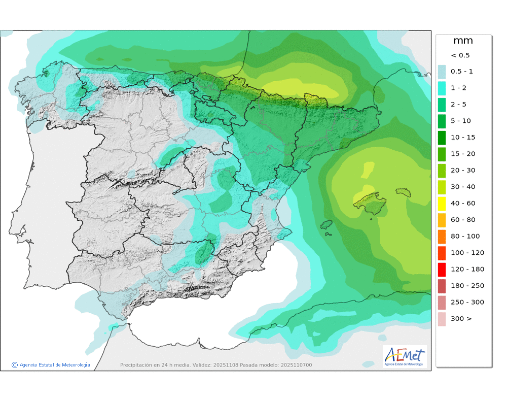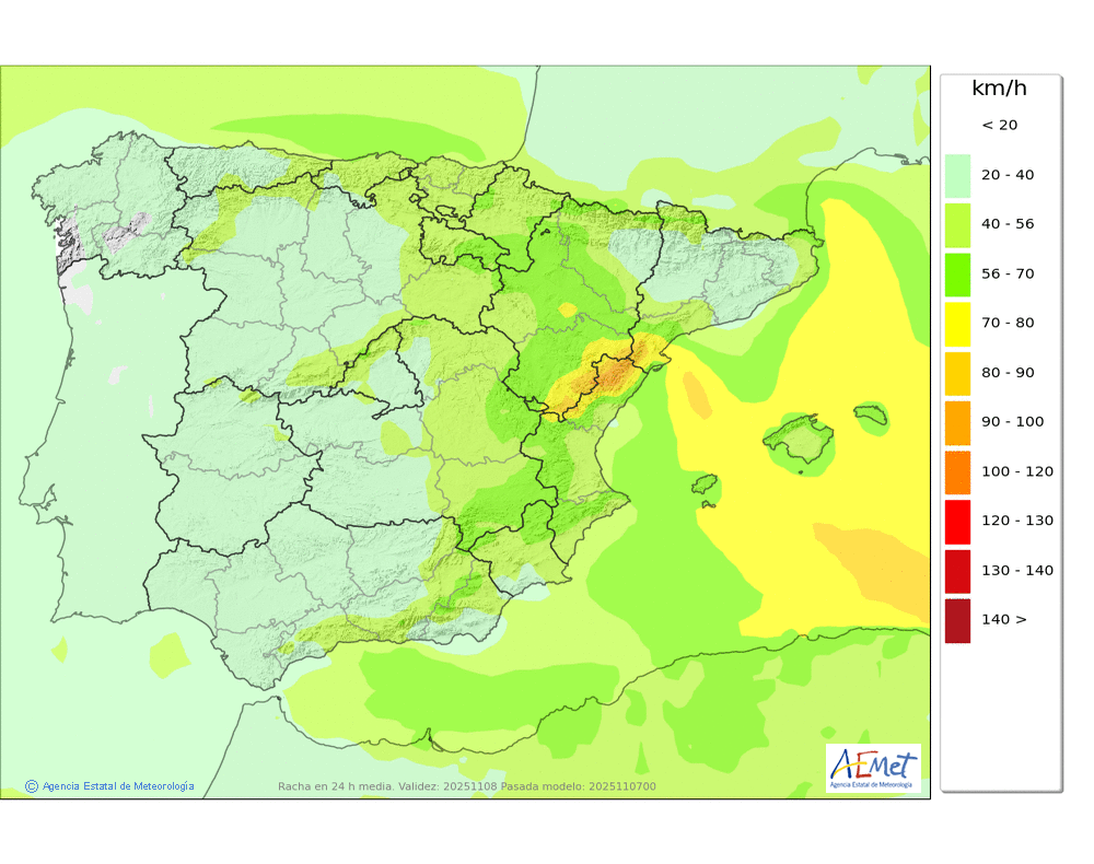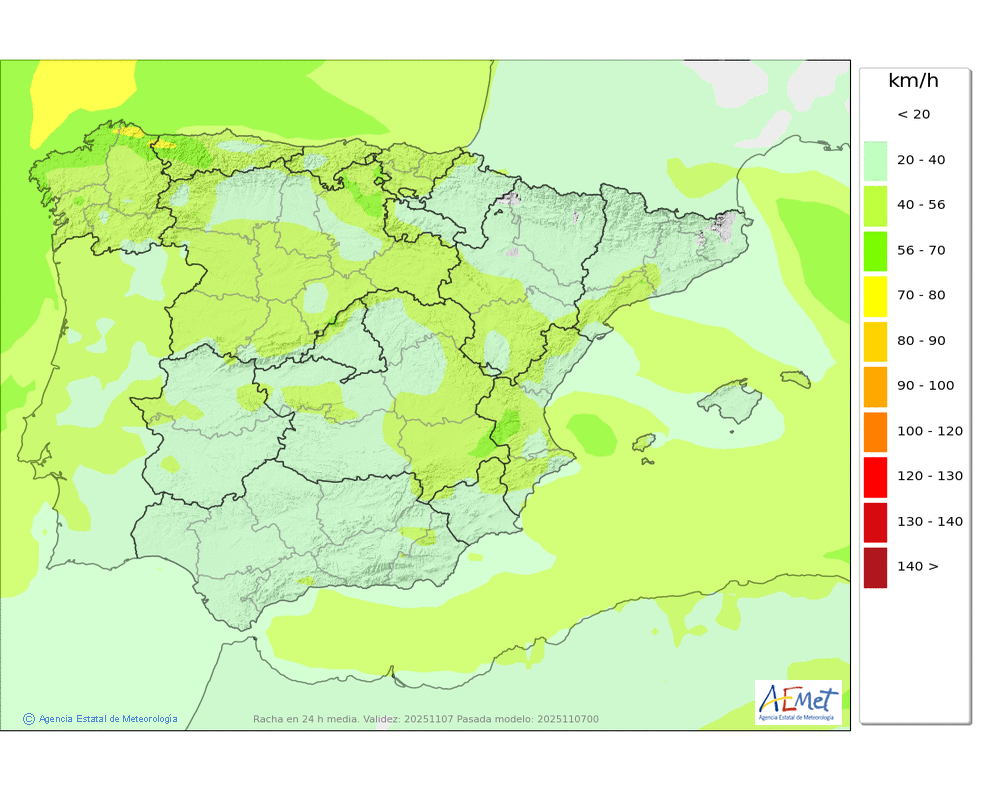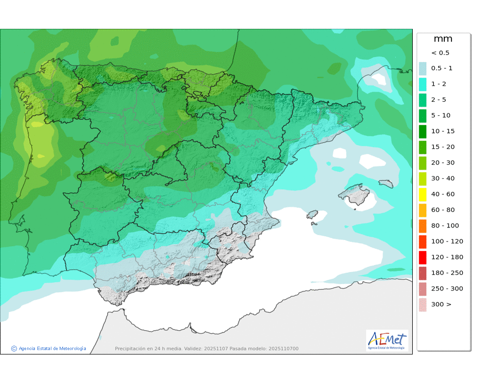 Elaboración de la predicción por la AEMET y el servicio de alerta meteorológica en Europa. (última actualización: 2025-11-07T08:57:13)