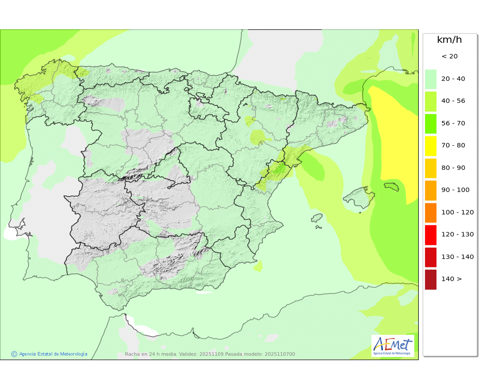 | Racha máxima del viento (km/h) | |||||||||||||||||||||||