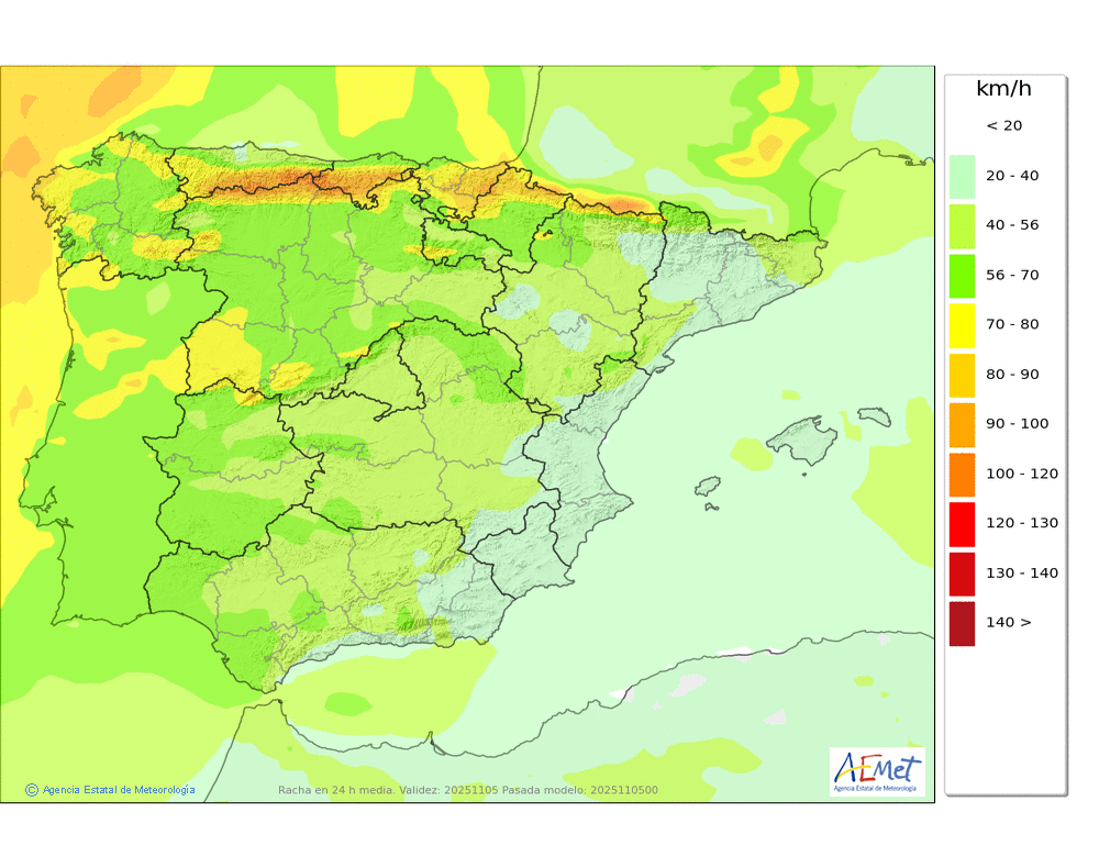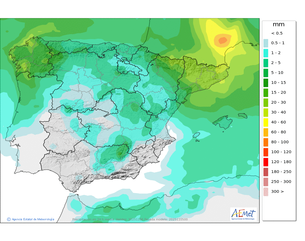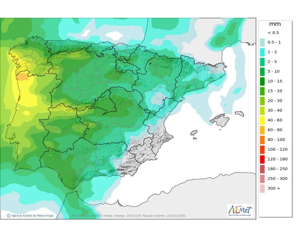 Elaboración de la predicción por la AEMET y el servicio de alerta meteorológica en Europa. (última actualización: 2025-11-05T08:02:12)