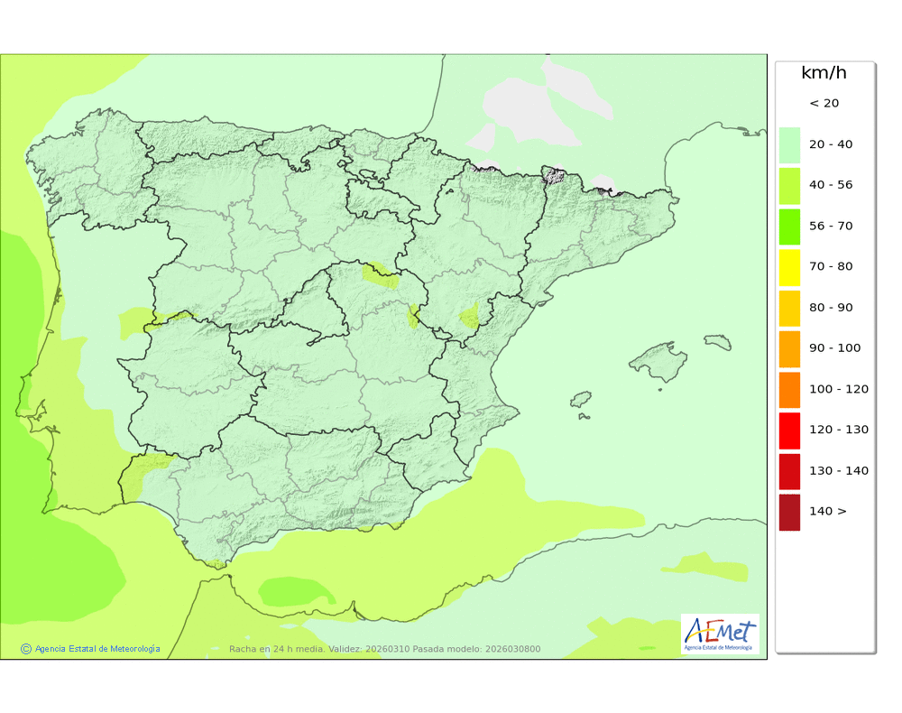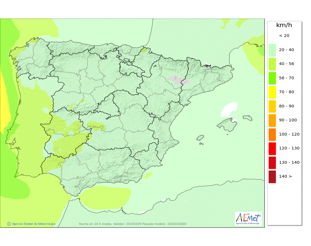 | Racha máxima del viento (km/h) | |||||||||||||||||||||||