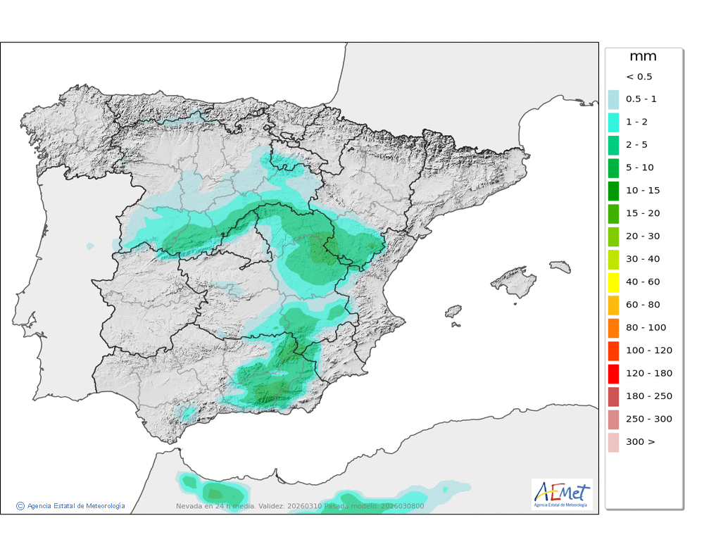 Elaboración de la predicción por la AEMET y el servicio de alerta meteorológica en Europa. (última actualización: 2026-03-08T08:57:12)