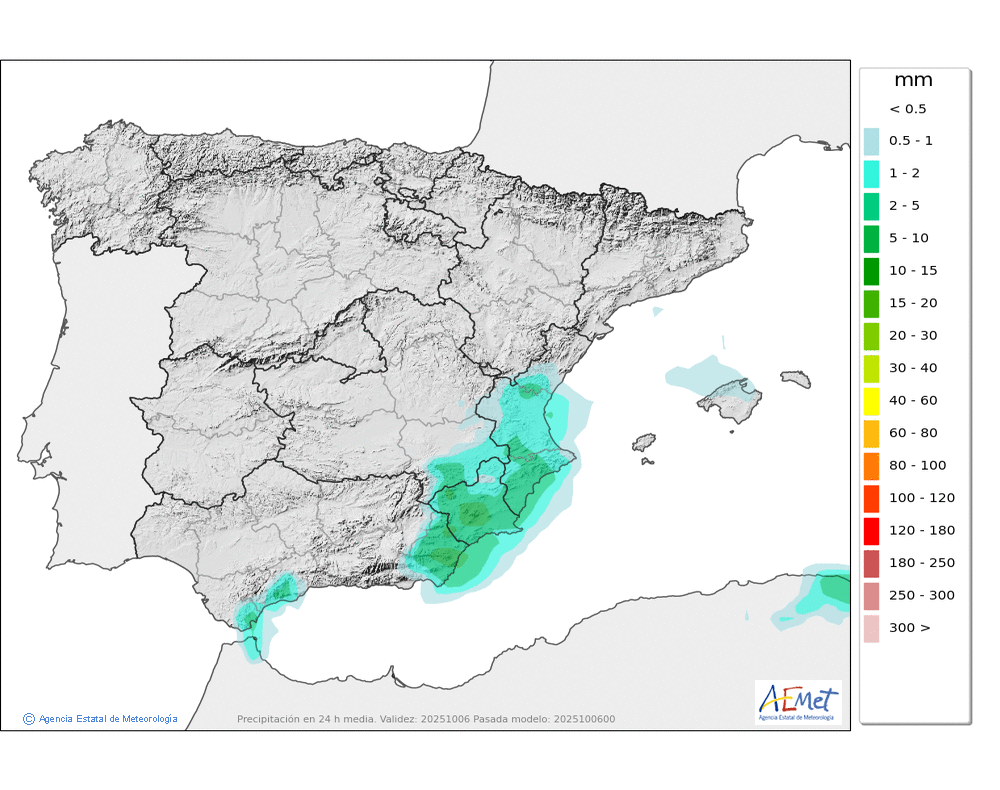 Elaboración de la predicción por la AEMET y el servicio de alerta meteorológica en Europa. (última actualización: 2025-10-06T18:27:12)
