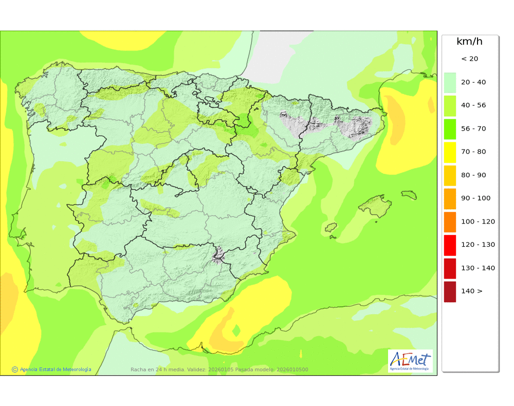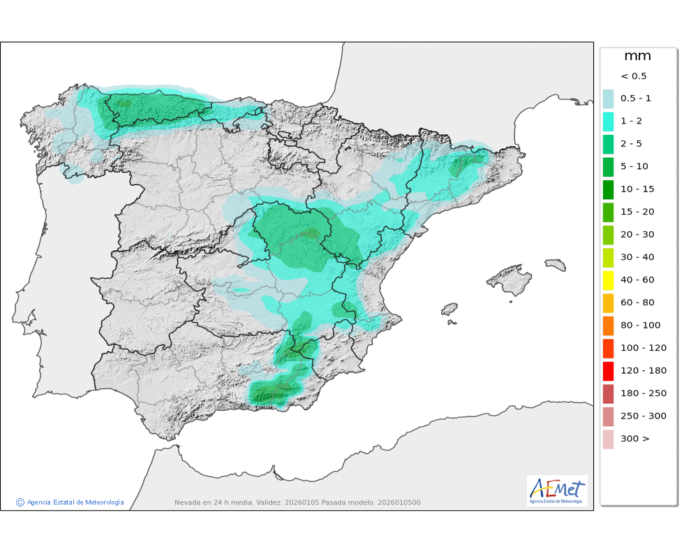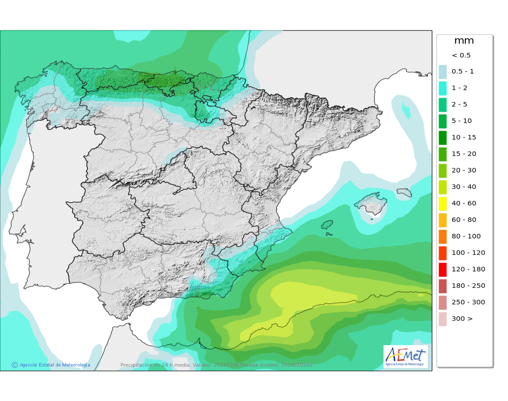 Elaboración de la predicción por la AEMET y el servicio de alerta meteorológica en Europa. (última actualización: 2026-01-05T07:35:07)