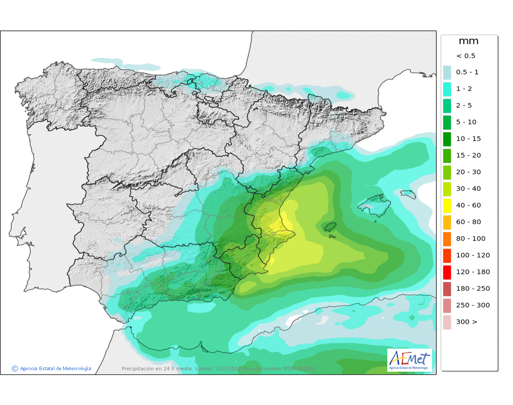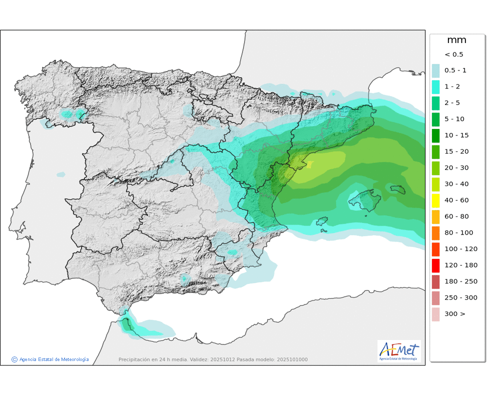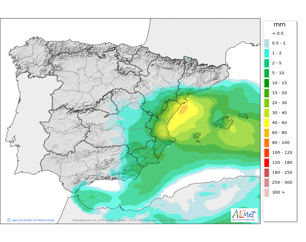 Elaboración de la predicción por la AEMET y el servicio de alerta meteorológica en Europa. (última actualización: 2025-10-10T18:32:13)