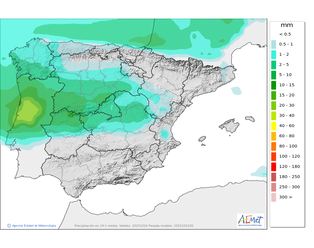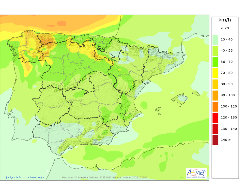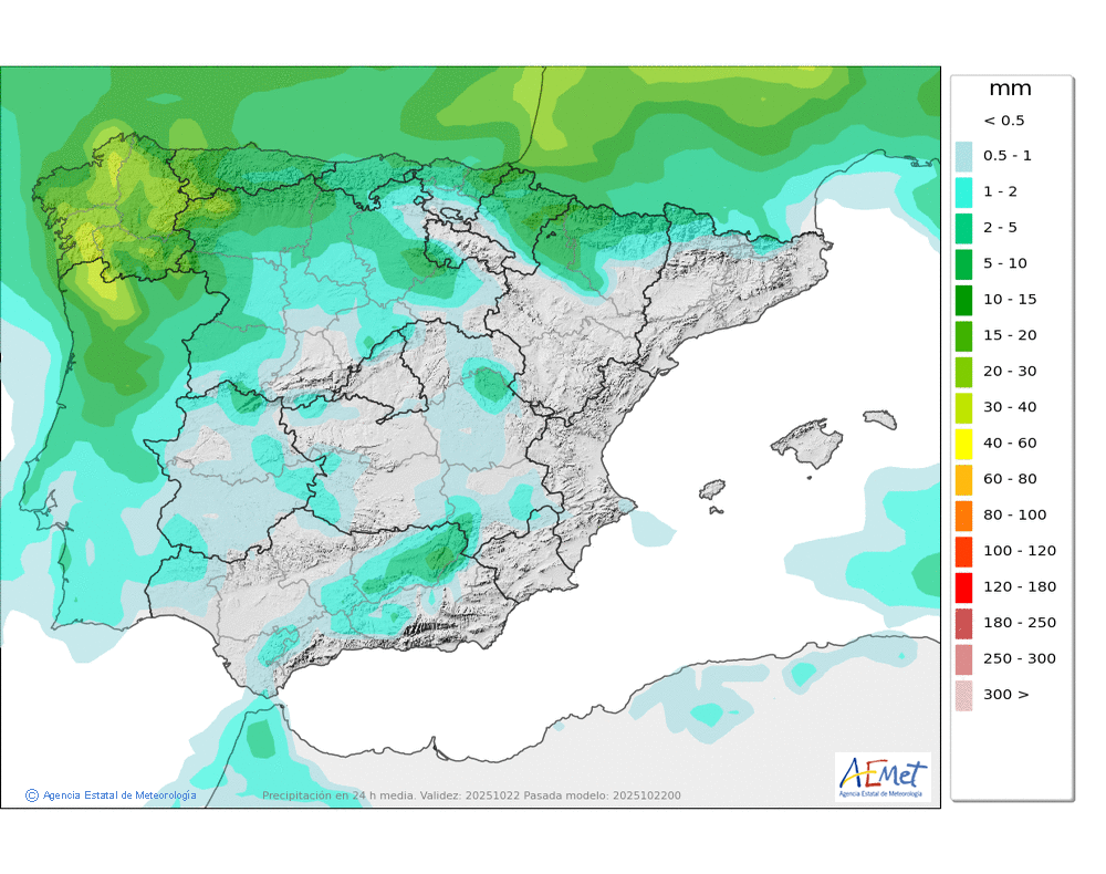 Elaboración de la predicción por la AEMET y el servicio de alerta meteorológica en Europa. (última actualización: 2025-10-22T06:32:11)