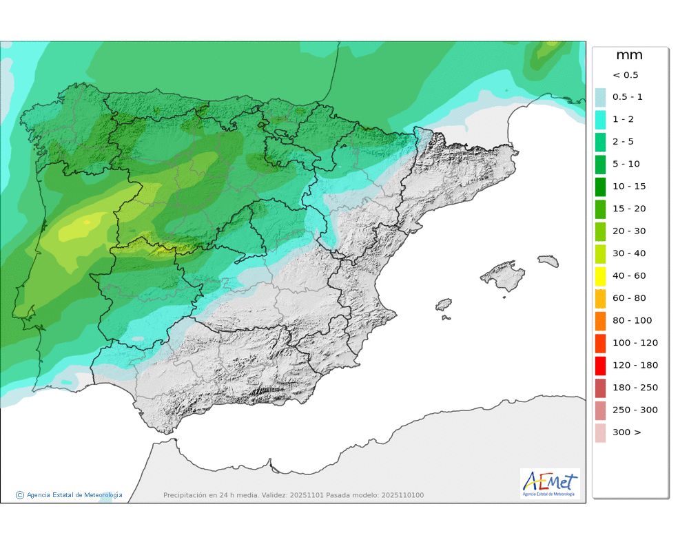 Elaboración de la predicción por la AEMET y el servicio de alerta meteorológica en Europa. (última actualización: 2025-11-01T08:52:09)