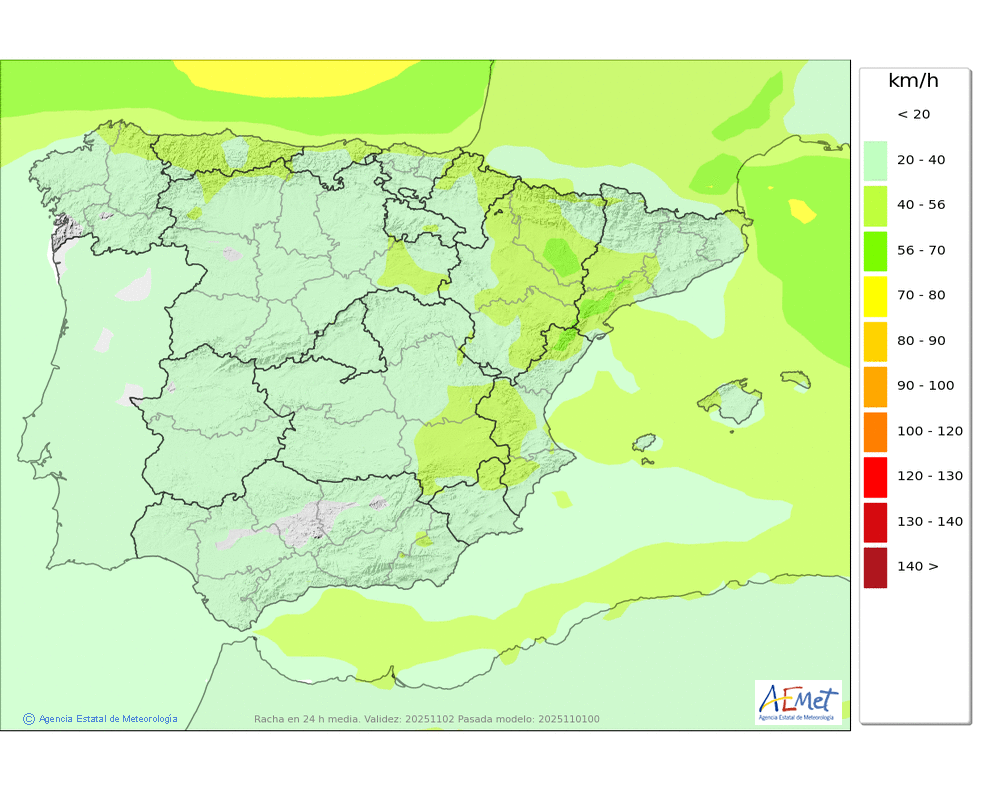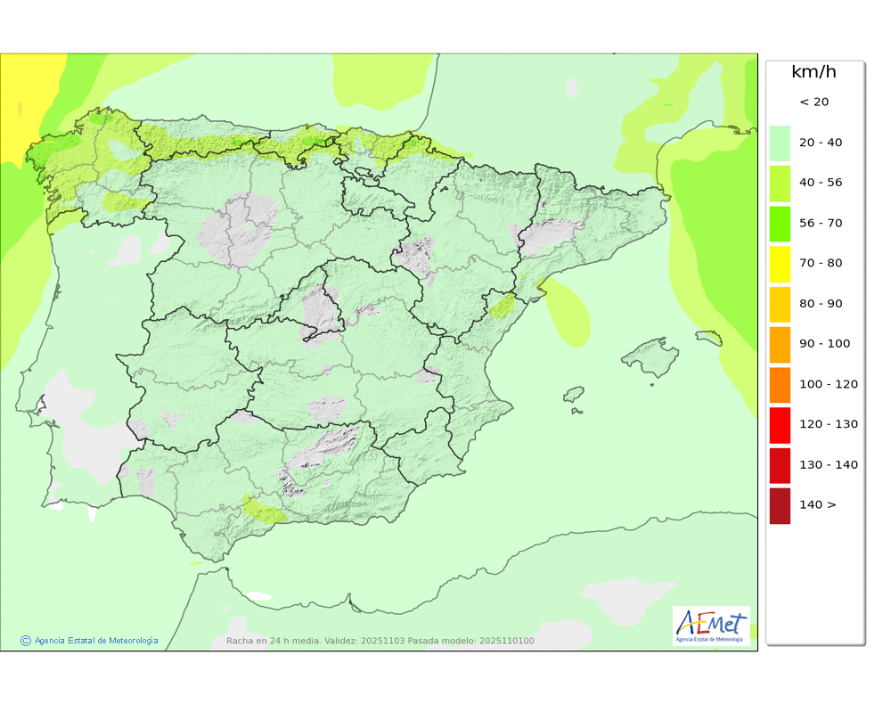 | Racha máxima del viento (km/h) | |||||||||||||||||||||||
