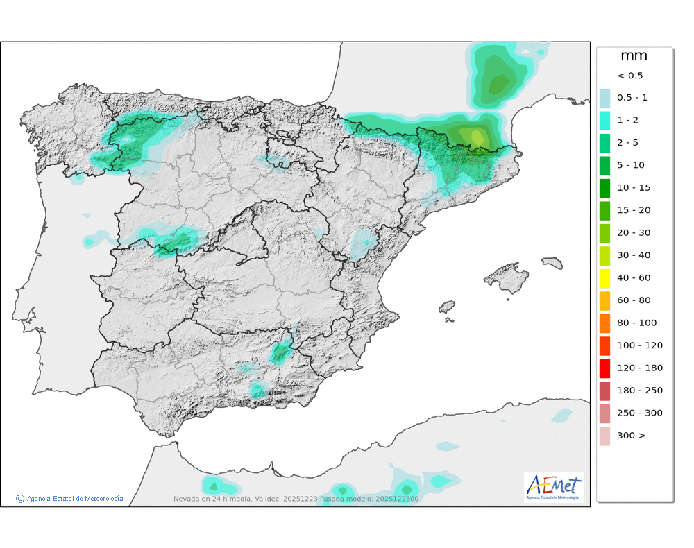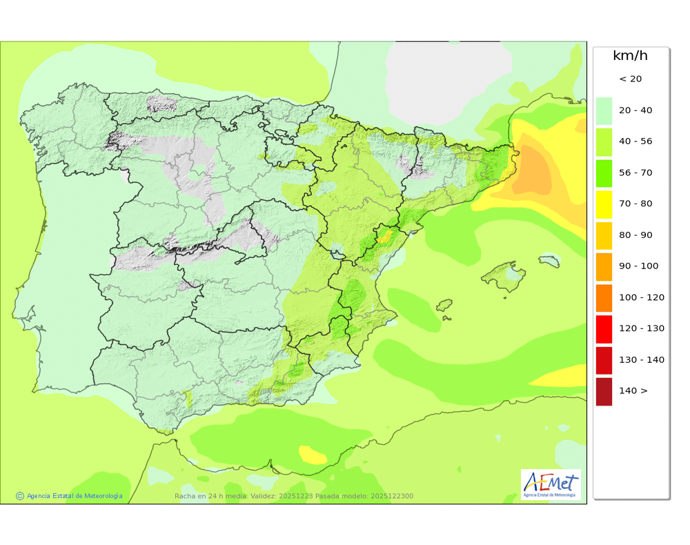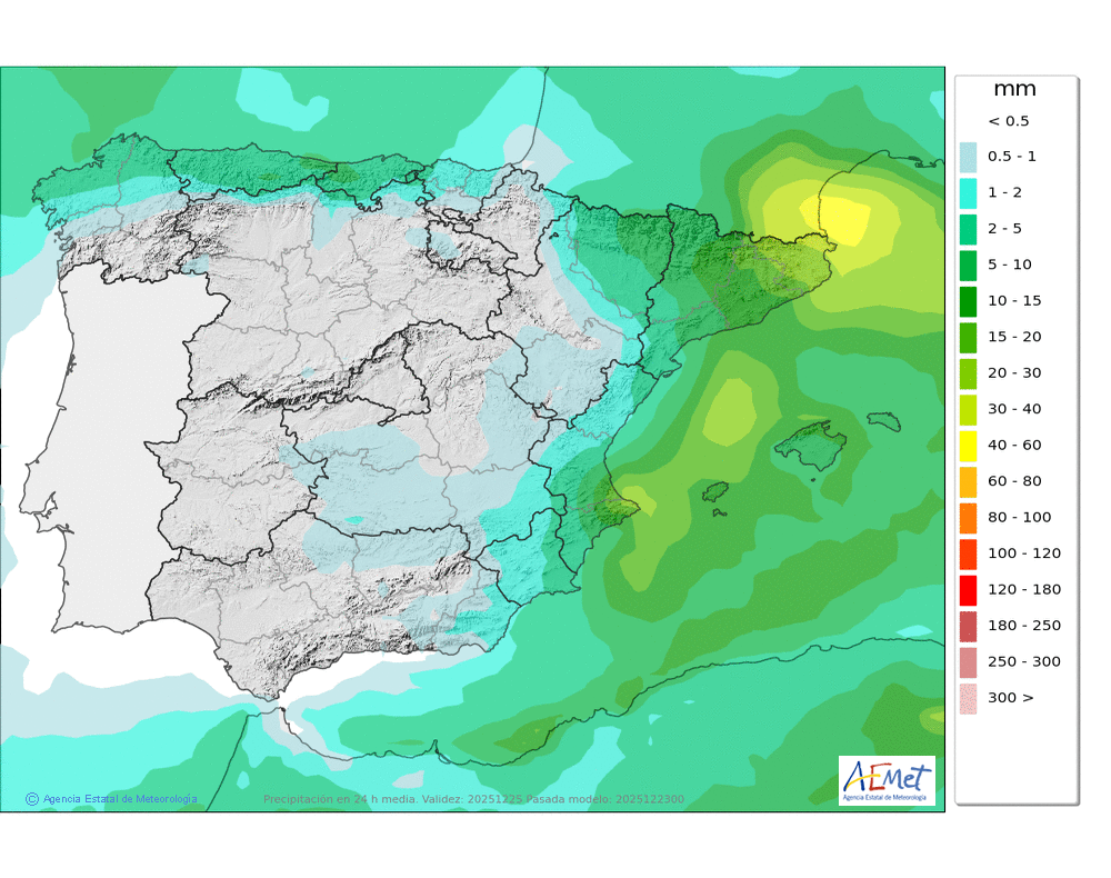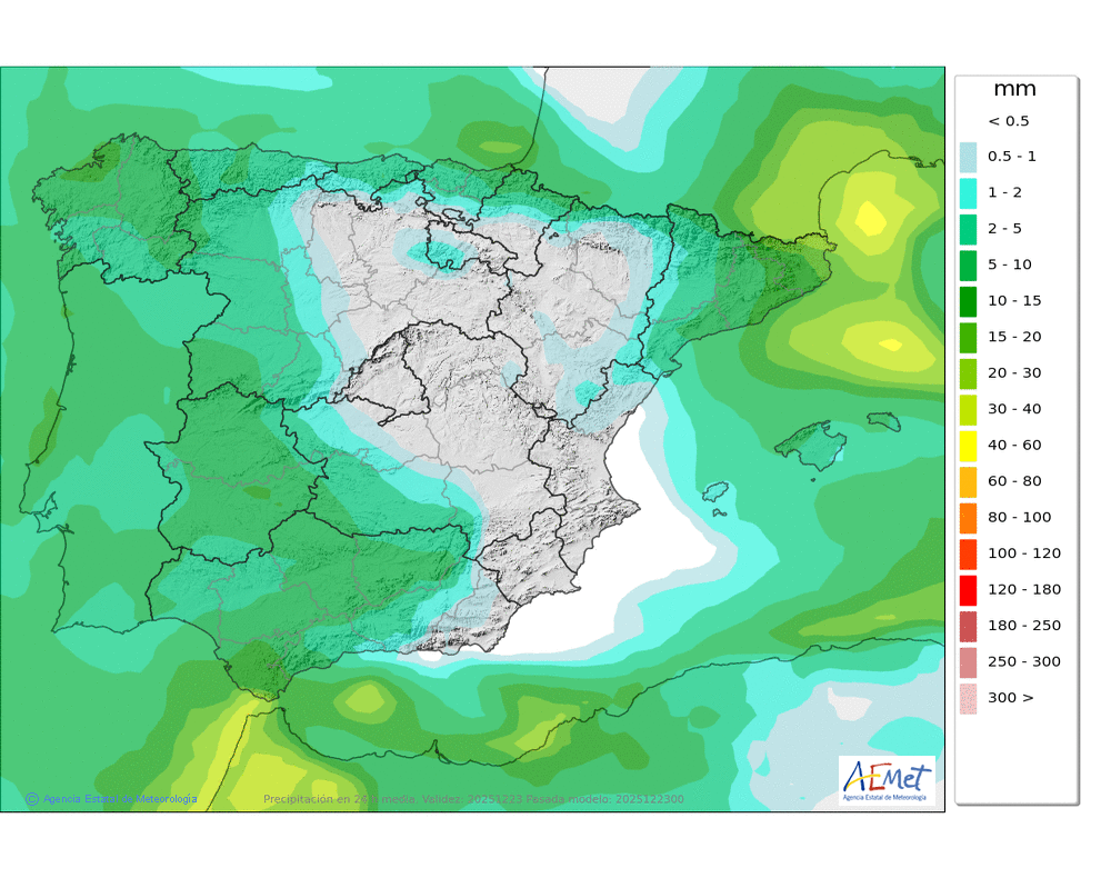 Elaboración de la predicción por la AEMET y el servicio de alerta meteorológica en Europa. (última actualización: 2025-12-23T06:49:07)