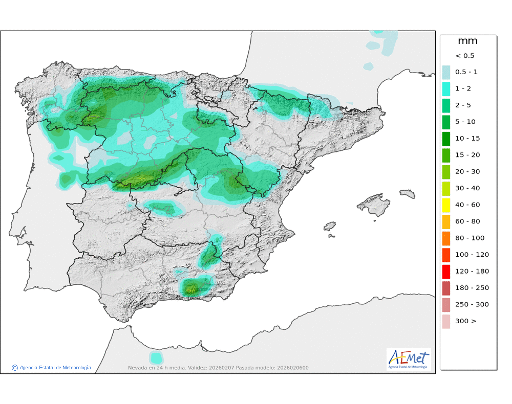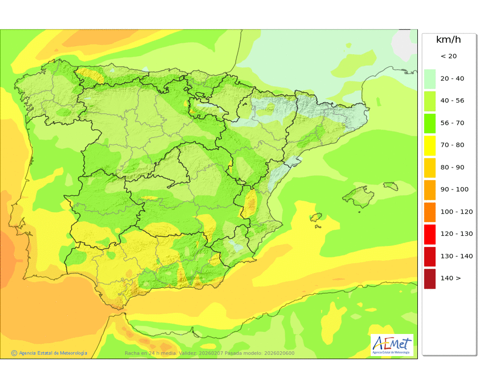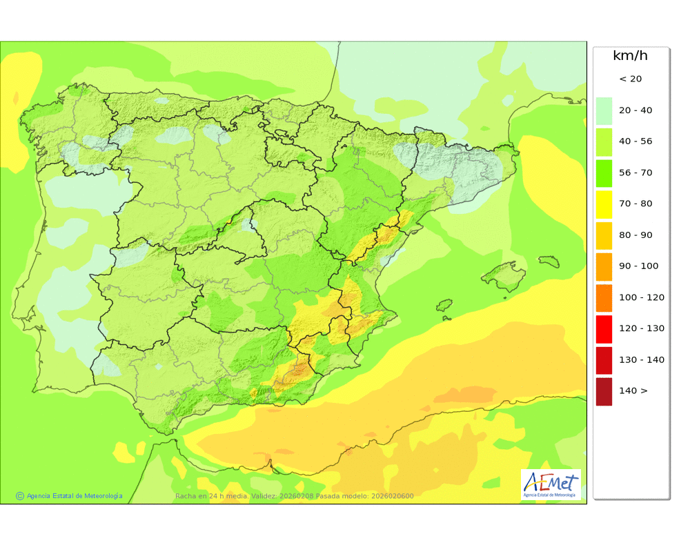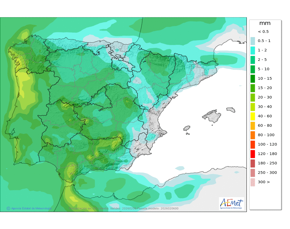 Elaboración de la predicción por la AEMET y el servicio de alerta meteorológica en Europa. (última actualización: 2026-02-06T06:52:14)