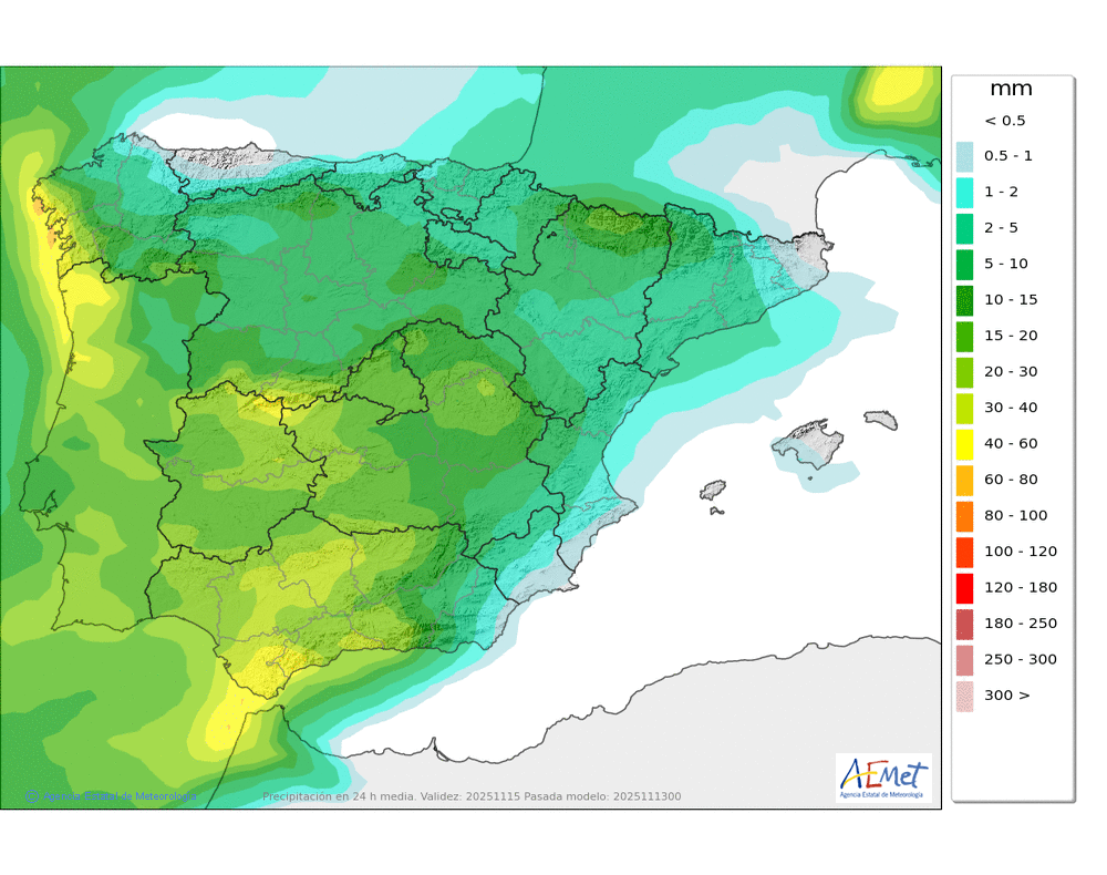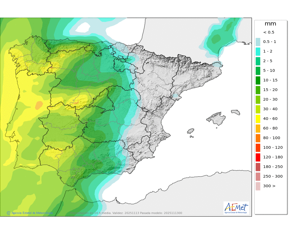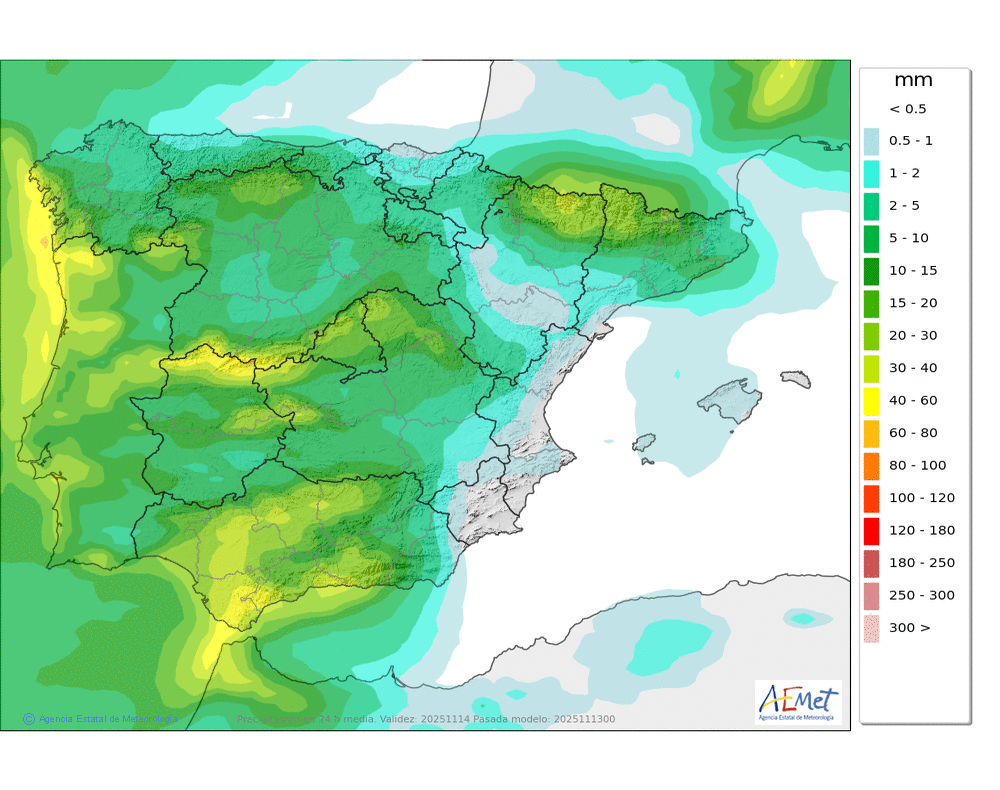 Elaboración de la predicción por la AEMET y el servicio de alerta meteorológica en Europa. (última actualización: 2025-11-13T08:57:10)