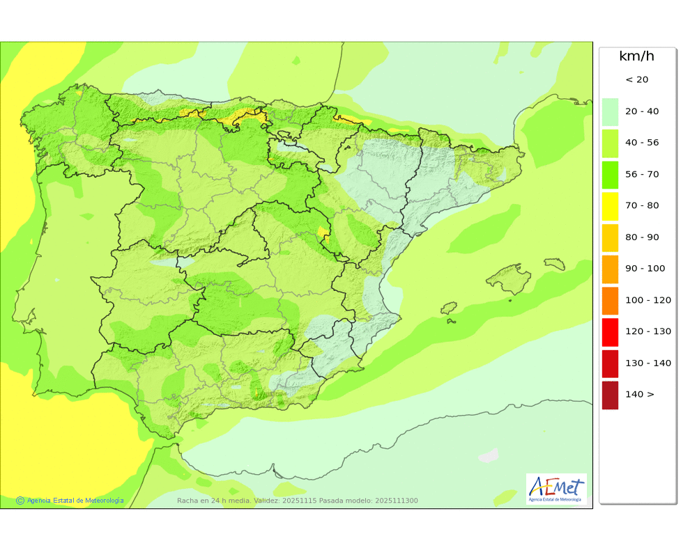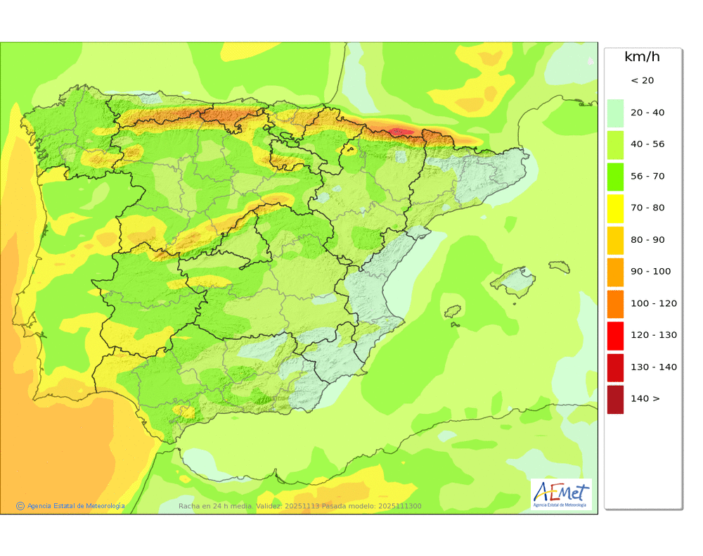 | Racha máxima del viento (km/h) | |||||||||||||||||||||||